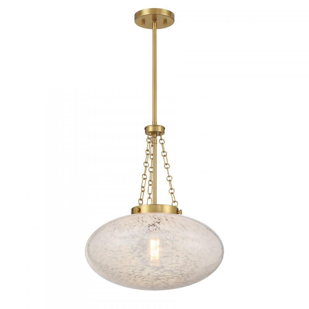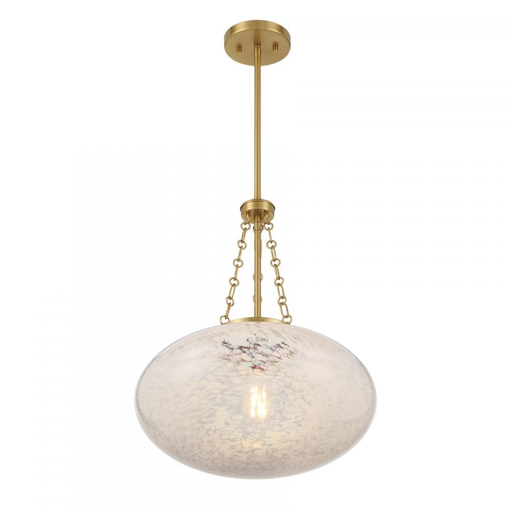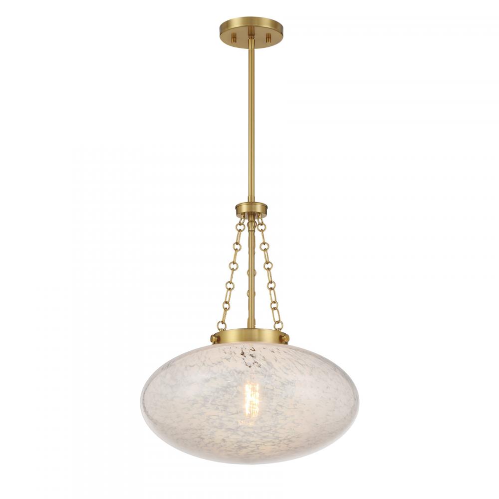 Get a bright and vintage-inspired look with the Savoy House Willow 1-light pendant. It has a mesmerizing, eye-catching oval shade of cloud glass, detailed hanging chain and a Warm Brass finish. Willow is 16.5" in width and has an adjustable height ranging from 20.25" to 74.25". Uses one standard size bulb of up to 60 watts. Bulb not included. Comes with four 12" downrods and one 6" downrod.