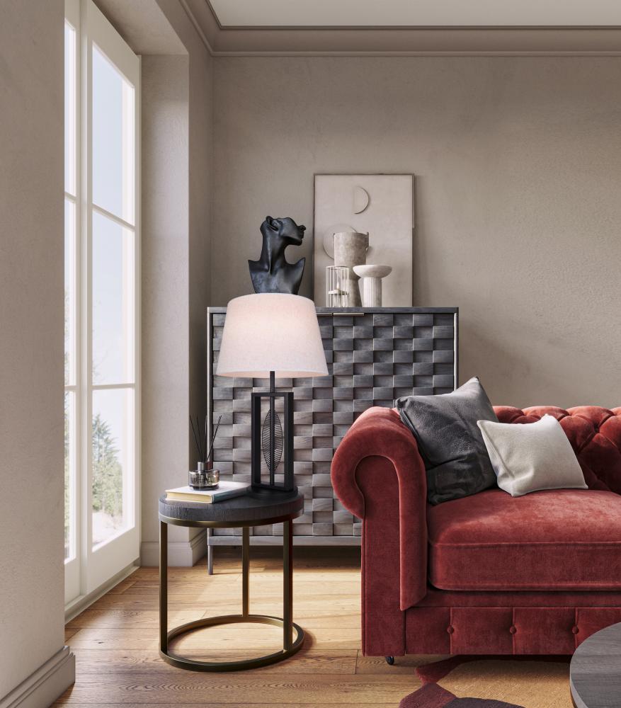 Nature-Inspired Design: This table lamp features a sleek matte black finish with a delicate leaf motif on the frame-like base, adding a touch of natural elegance to your décor