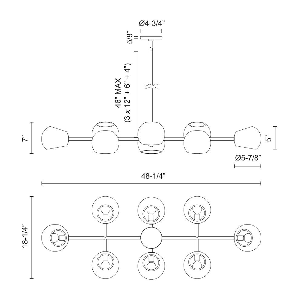 Willow 48-in Matte Black 8 Lights Linear Pendant