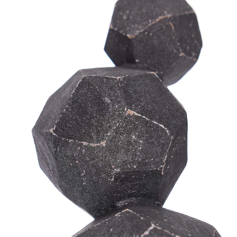 THE TOTEMIC WILMOT SCULPTURE IS DESIGNED IN A STACK OF FACETED, CHARCOAL TERRACOTTA SPHERES THAT BALANCE ON A CARVED PLINTH. INSPIRED BY GEODESIC DOMES, THE VERTICAL CERAMIC SCULPTURE IS AT ONCE EARTHY AND MODERN.