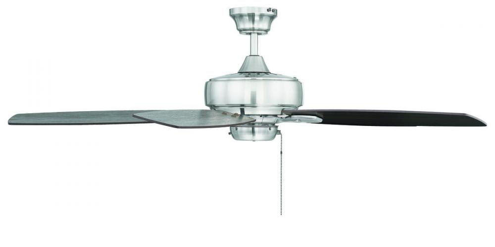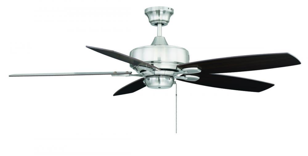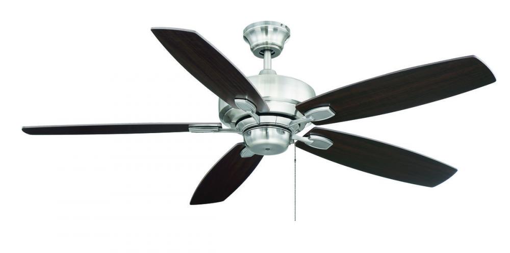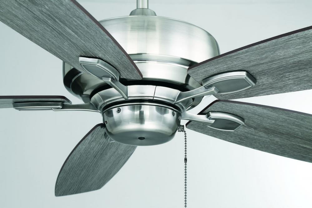 This eye-catching fan has sleek details that add the finishing touch to all of today's interiors. The lustrous Brushed Pewter finish is elegant and perfectly complemented by Chestnut and Grey Wood blades.