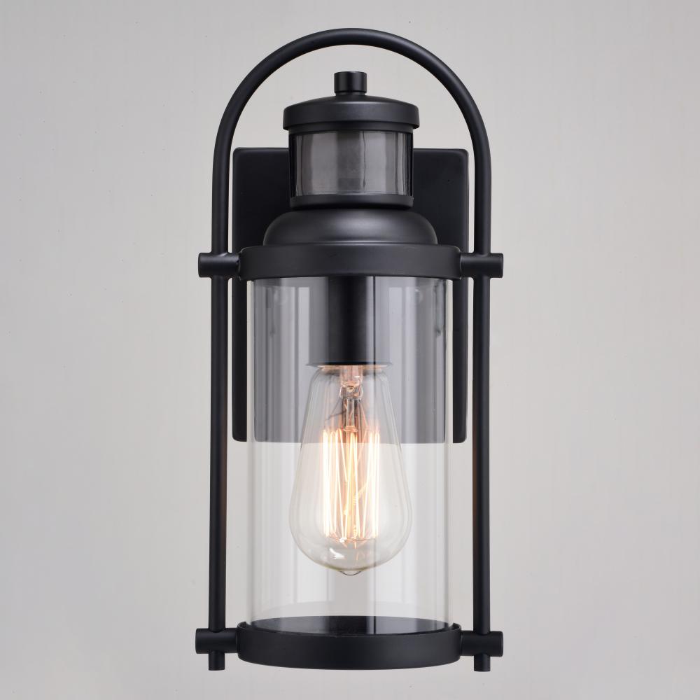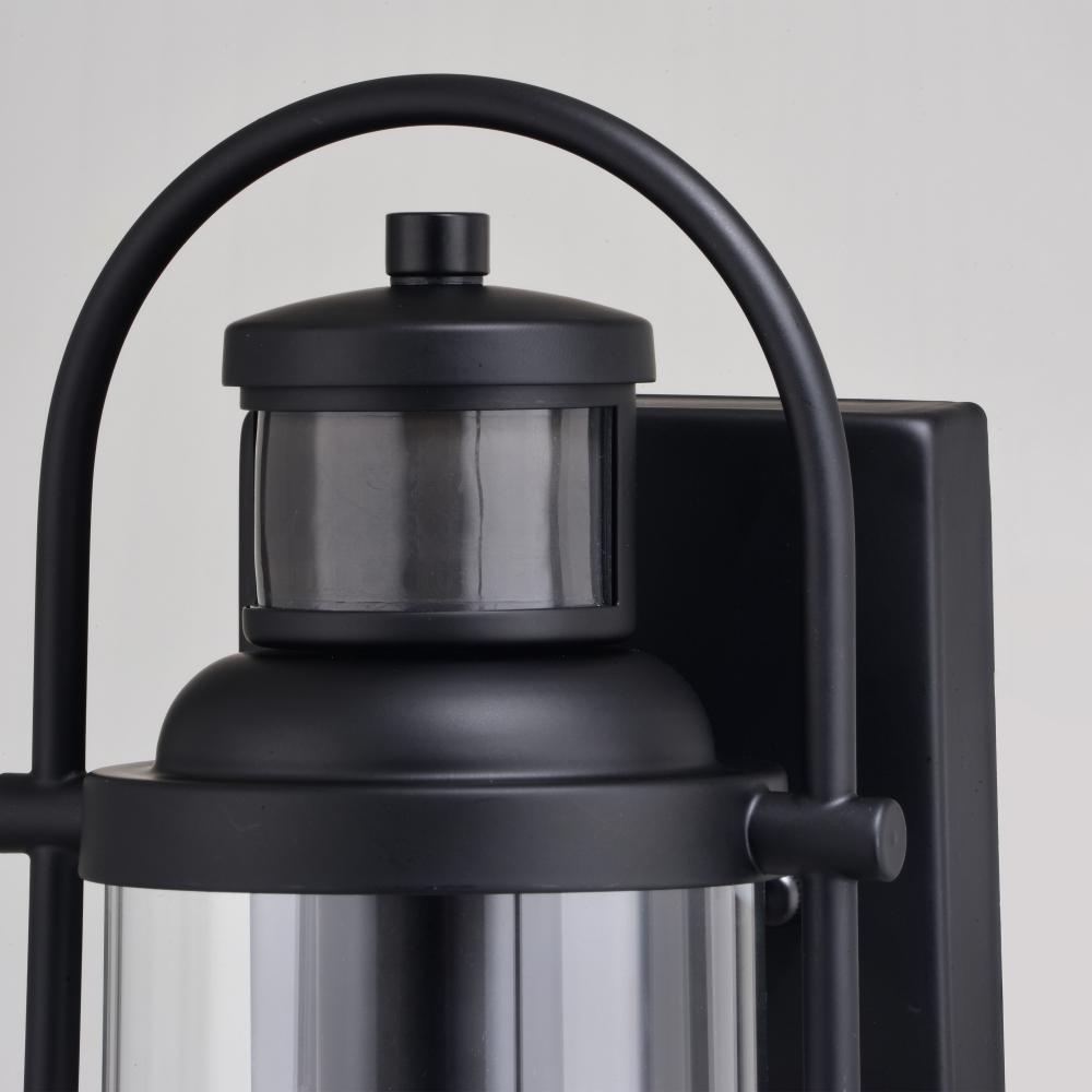 With its distinctive wrap-around handle, the Winfield collection is a blend of both transitional and contemporary styling. The matte black finish and clear cylindrical glass shade will enhance any home exterior. Ideal for your porch, entryway, or any other outdoor area of your home. Dualux dual-level outdoor security lighting is designed to fit your lifestyle and enhance the beauty, safety, and usability of your home's exterior areas. Enjoy the comfort and convenience of automatic dusk-to-dawn lighting with low-level soft, ambient illumination overnight, fully brightening to high level whenever motion is detected to keep your property safe and secure. Standard on-off motion detection or full brightness dusk-to-dawn modes are also available via the EZSET controls. This fixture works with most dimmable LED bulb models. You get convenience, security, and efficiency of a security light integrated within a Dualux decorative outdoor light fixture.
