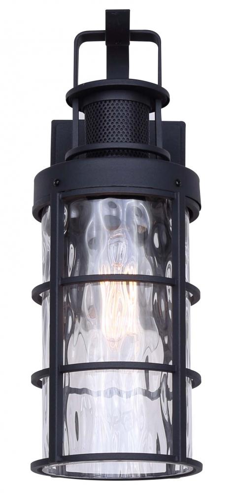 The Winslet IOL610BK, a single-light outdoor downlight in Black (Sand), features a unique Watermark Glass design. It supports a 60W Type A bulb, measuring 5.125 inches wide, 14.625 inches high, and 7.5 inches deep. This fixture, complete with Easy Connect installation, offers a blend of style and functionality for any outdoor setting.