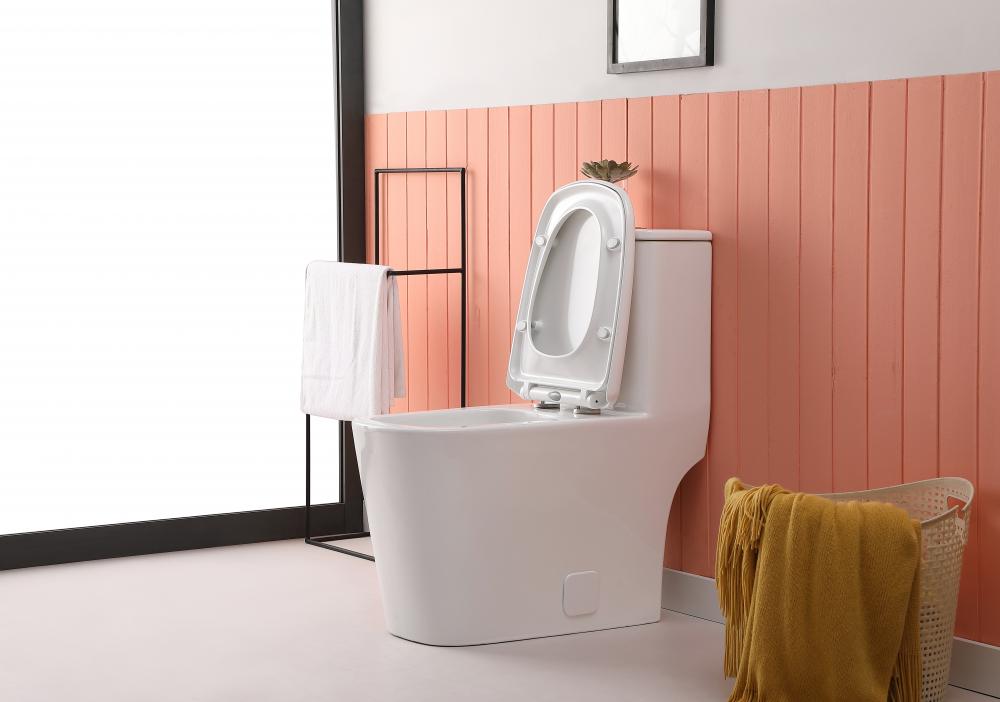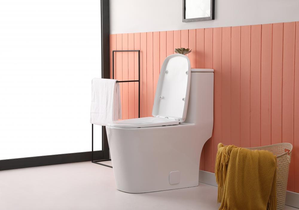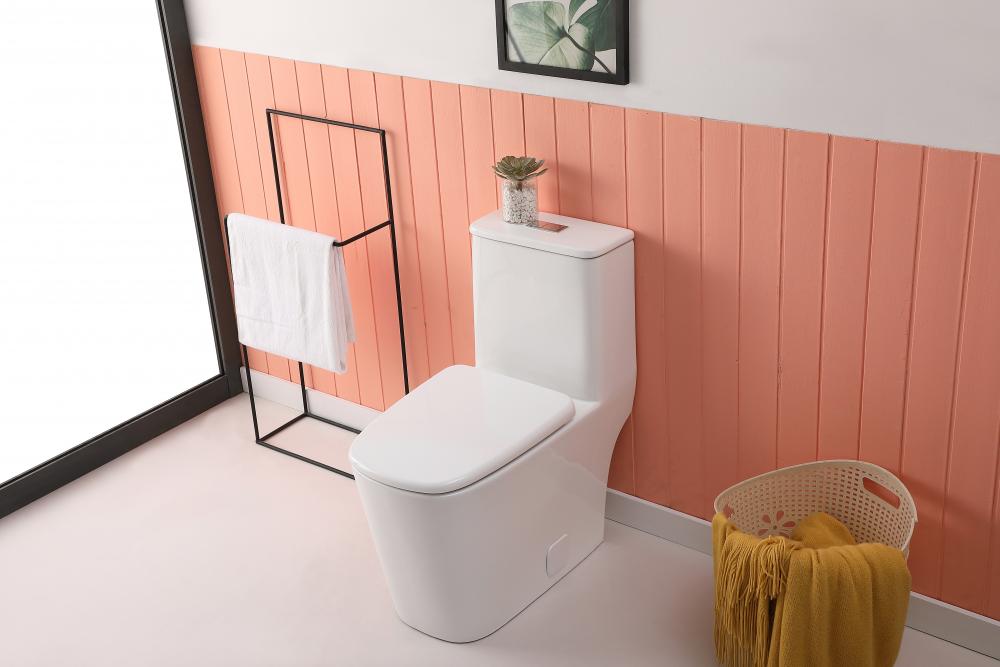 modern one piece toilet design with a square bowl offers added comfort