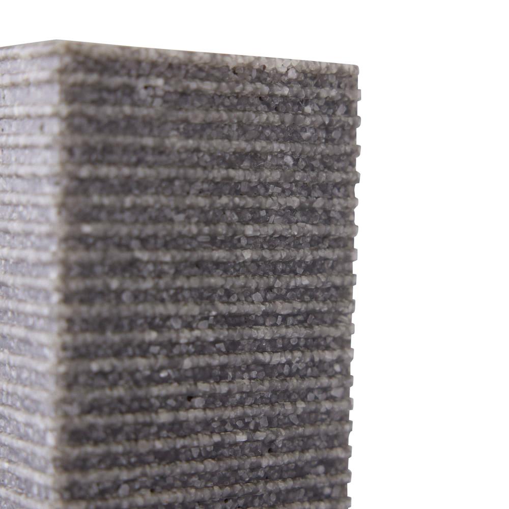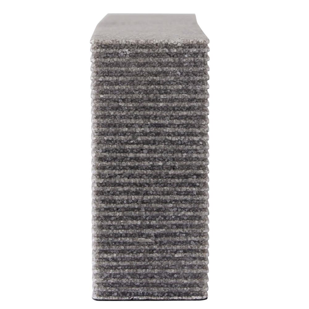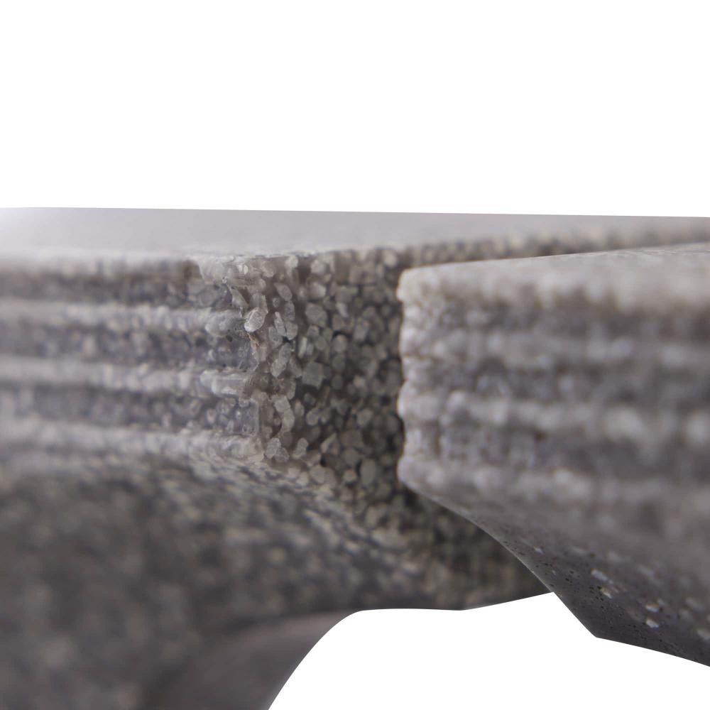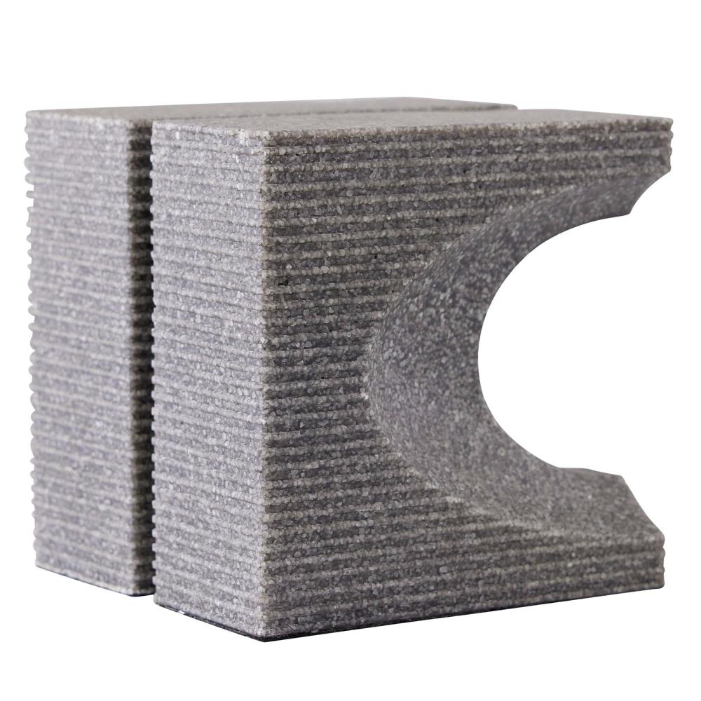 BRUTALIST INSPIRED, OUR WOLCOTT BOOKENDS, IN GRAPHITE RICESTONE COMPOSITE, FEATURE GRAPHIC CUTOUTS AND A CHISELED TEXTURE INSPIRED BY CONCRETE ARCHITECTURE OF THE PERIOD. THIS RICHLY SIMPLE PAIR CAN BE USED AS BOOKENDS OR STYLED TOGETHER AS SCULPTURE. FINISH WILL VARY.