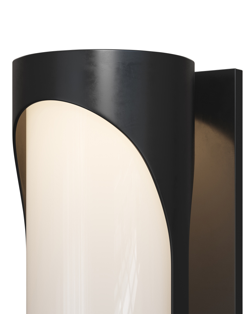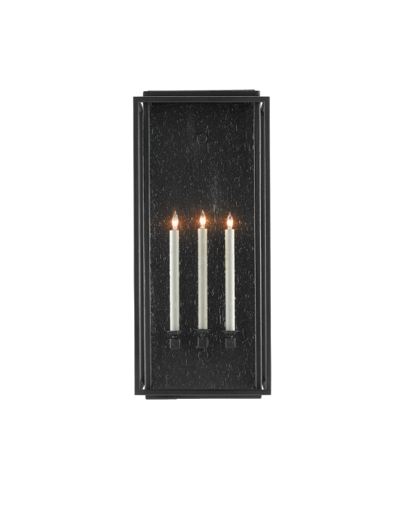 The Wright Large Outdoor Wall Sconce in our Twelfth Street collection of outdoor lighting is similar to our Tanzy sconces but with an added armature surrounding the fixture to bring it an arts and crafts feel. It features a high-performance, weather-resistant Trilux finish that is fade resistant, crack resistant and rust resistant. We guarantee the finishes applied to our Twelfth Street pieces for five years. The metal on this black wall sconce in a midnight finish surrounds seeded-glass panes and is certified for outdoor and damp locations.