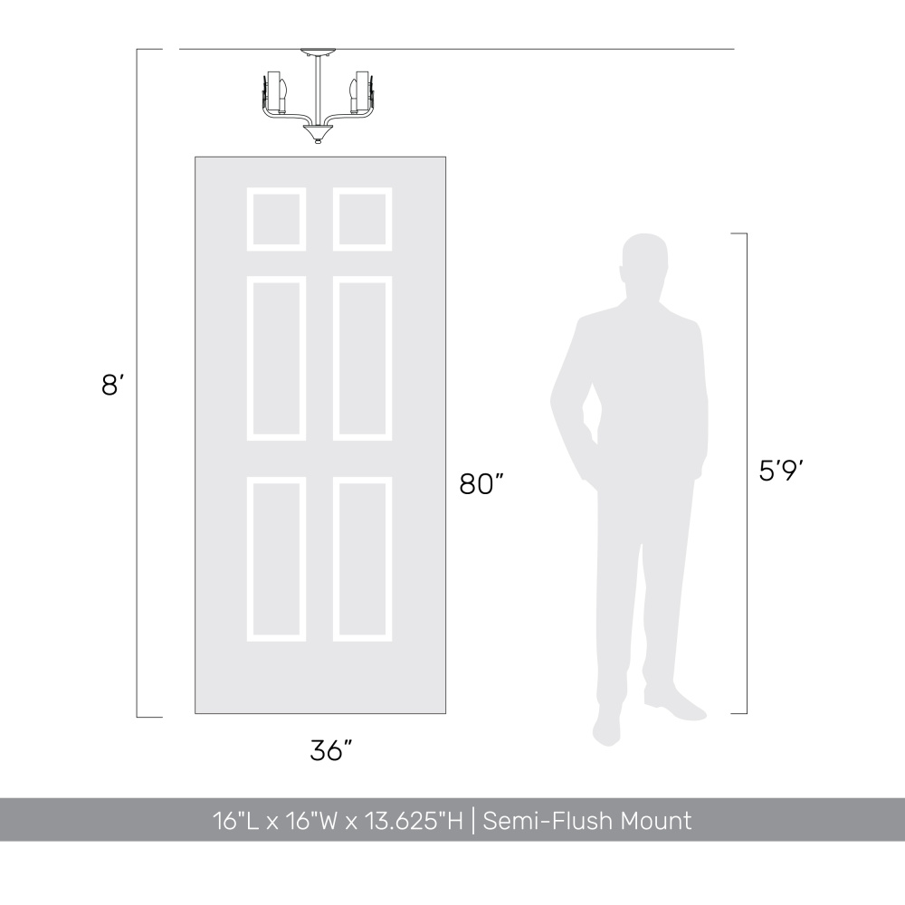 Bring nature-inspired elegance into your home with the Wry Lighting Bloem 4-light Semi-Flush Mount in White Gold. Featuring a glass shade and a white gold frame, it creates a bright and welcoming atmosphere. Its glass shade features Hammered Water Glass, creating a visually stunning light display through its unique texture and refractive properties. Our White Gold finish brings warmth and sophistication, embodying a transitional design perfect for various styles. This semi-flush mount is ideal for entryways, bedrooms, and kitchens, with damp location rating allowing installation in semi-enclosed spaces. Its convertible design facilitates installation for low or high ceilings. Overall dimensions are 16"W x 13.63"H x 16"D, and it requires 4 E12 candelabra base bulbs (not included). Enhance your decor with this artisanal piece that embodies both quality and style.