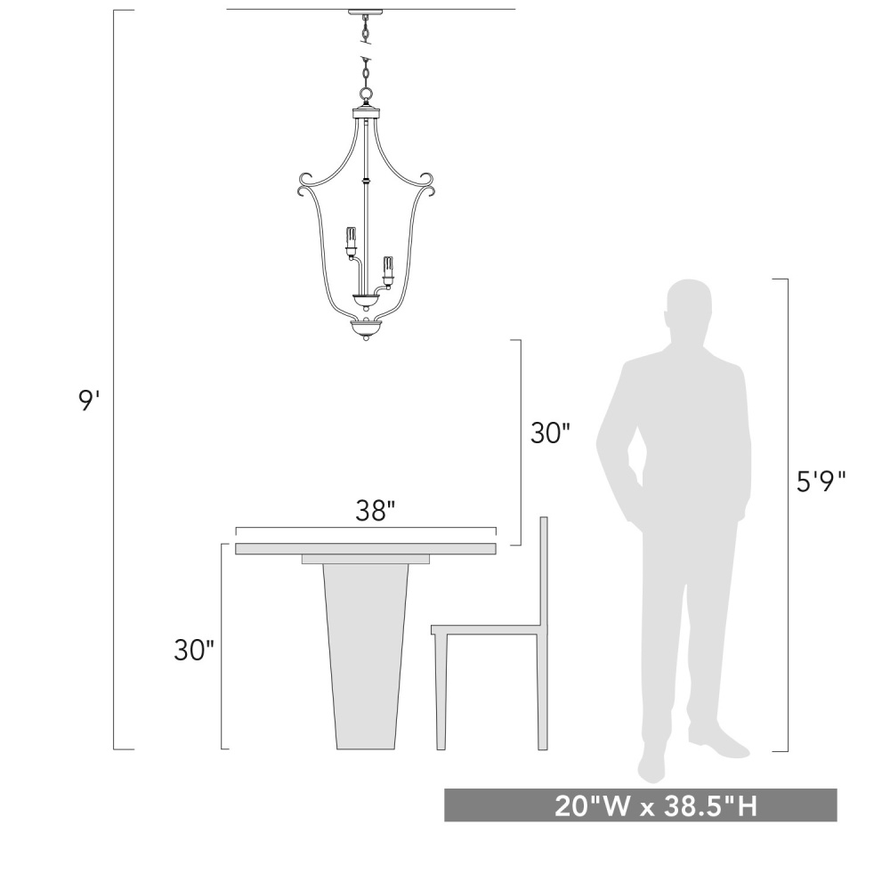 Bring classic elegance into your home with the Wry Lighting Grace 9-light Chandelier in Rubbed Bronze. This chandelier presents a beautifully ornate design without needing a shade. The intricate scrollwork and grand silhouette create a sense of timeless grandeur, perfect for making a regal statement in your home. The Rubbed Bronze finish adds warmth and depth, with a rich, deep brown base highlighted with subtle coppery bronze tones, giving it a sophisticated glow. Ideal for dining rooms and foyers, this dry location rated fixture suits various indoor spaces. Its sloped-ceiling compatibility and adjustable height feature allow for easy installation. Overall dimensions are 20"W x 38.5"H x 20"D. Requires 9 E12 candelabra bulbs (not included), max 60 watts per bulb, to illuminate your space with charm and style. Elevate your living spaces with this magnificent chandelier, embodying the finest in traditional decor.