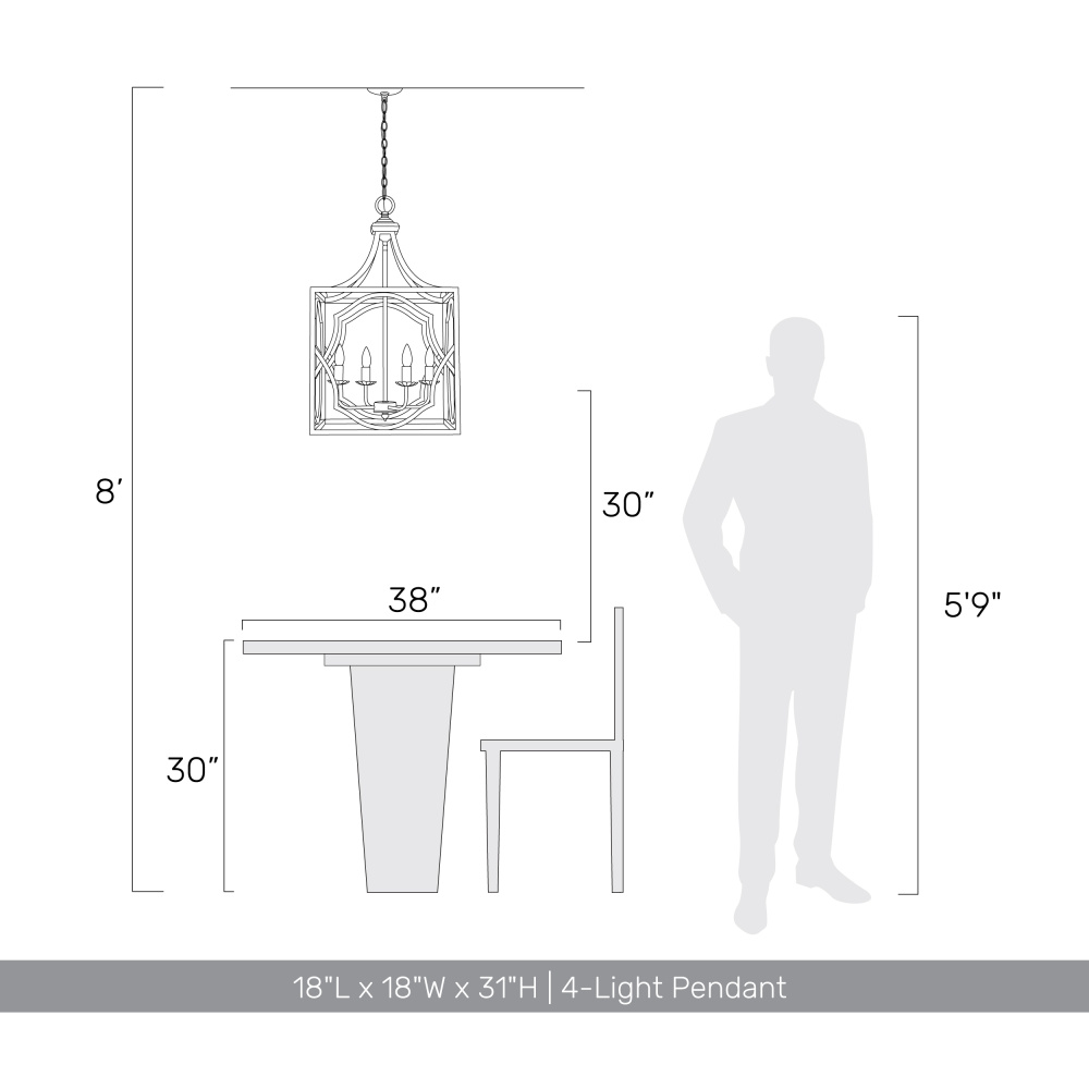 Bring traditional elegance to your home with the Wry Lighting Laurent 4-light Pendant in Antique Ivory. This pendant's design does not use a shade, allowing its vintage allure to stand out prominently. The antique ivory finish radiates warmth, showcasing the artisanal detailing that resembles a cherished family heirloom. This fixture is perfect for kitchens, dining areas, or foyer spaces where statement lighting is desired. Rated for dry locations, it ensures suitability in living spaces away from moisture. It's sloped-ceiling compatible and features adjustable height, ranging from 34" to 106", allowing it to adapt perfectly to your space. It requires four E12 candelabra base bulbs (not included), with a maximum wattage of 60 each, to create a focused yet decorative illumination. With overall dimensions of 18"W x 31"H x 18"D, this pendant is an ideal choice for elevating the aesthetic appeal of your home. Hand-painted artisanal finishes further ensure each piece is distinctly unique, perfect for adding an enchanting focal point in any room.