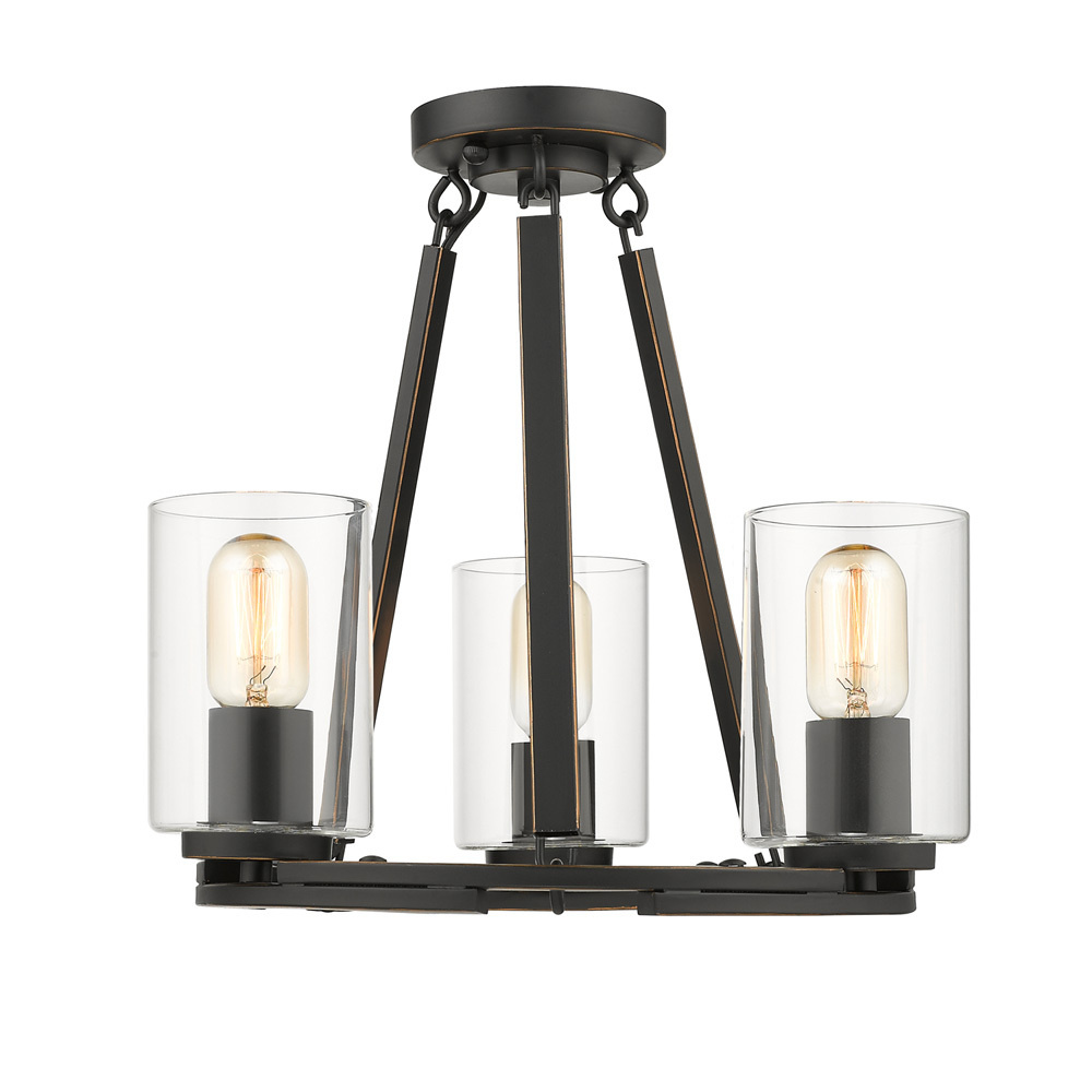 Bring modern industrial elegance into your home with the Wry Lighting Monroe 3-light Chandelier. Featuring a glass shade and a matte black frame, it creates a welcoming atmosphere. The clear glass shade offers brilliant, unobstructed light, showcasing the beauty of the bulbs while adding a clean and timeless appeal. This polished glass enhances the chic design, perfect for any modern space. The matte black finish is both timeless and versatile, providing a smooth and non-reflective look that complements a wide range of decor styles. Ideal for indoor spaces not subject to moisture, this chandelier is perfect for dining rooms, living areas, and bedrooms. It features a convertible design with adjustable height, allowing it to be installed as a semi-flush mount or pendant, accommodating both sloped and flat ceilings with a hanging height range from 15.25" to 87.25". Overall dimensions are 16"W x 14.5"H x 16"D, and it requires three E26 medium base bulbs (not included) with a maximum wattage of 60 per bulb. Elevate your space with quality craftsmanship and a refined aesthetic that makes a stunning statement in any room.