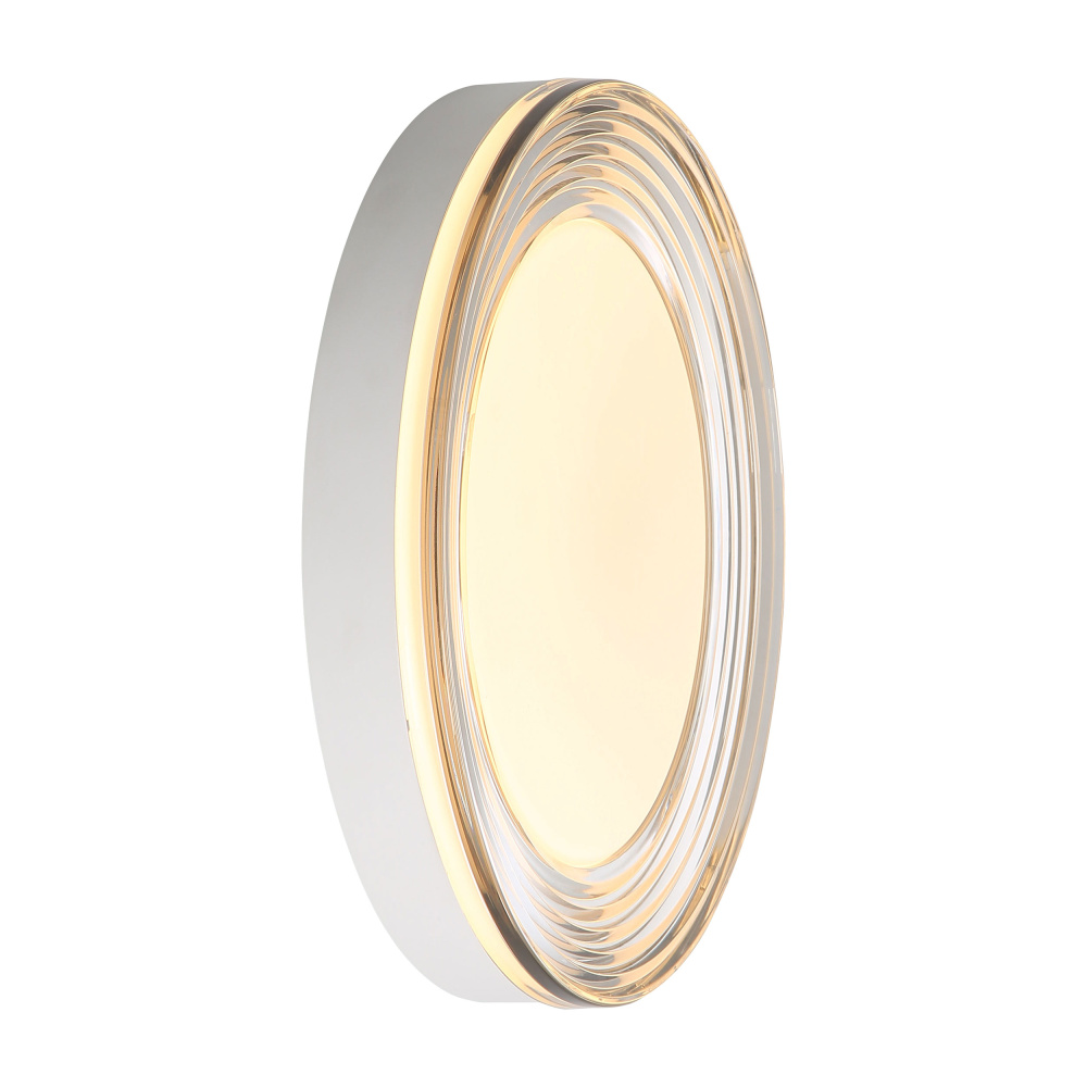 Bring modern elegance into your home with the Wry Lighting Ondulada Integrated LED 16in Flush Mount in Sand White and Smoky Acrylic. Featuring a smoky acrylic shade and a Sand White frame, it creates a welcoming atmosphere. The smoky acrylic shade, distinguished by its concentric grooves, refracts light beautifully, creating a luminous, halo-like effect that adds sophistication to your space. Its highly polished finish enhances its clean, contemporary appeal, making it an ideal choice for modern interiors. The Sand White finish features a fine, uniform sandy texture that beautifully absorbs light, making it a suitable option for minimalist and Scandinavian designs. Ideal for low ceilings in hallways, closets, laundry areas, and bathrooms, this fixture is dry location rated, ensuring safety in indoor spaces not subject to moisture. The overall dimensions are 15.75"W x 1.63"H x 15.75"D, and it utilizes integrated LED technology, providing 1104.1 rated lumens and a warm 3000K glow. Enhance your home's ambiance with this stylish fixture, designed for both beauty and functionality.