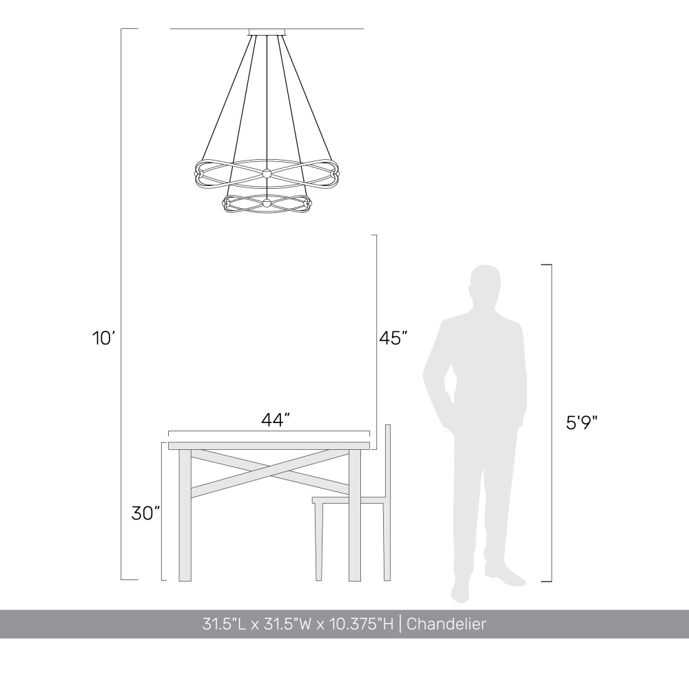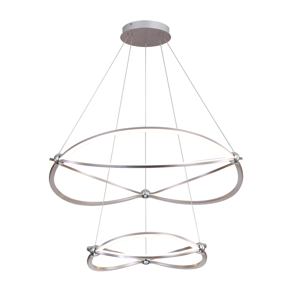 Bring modern elegance into your home with the Wry Lighting Spirale Integrated LED 32in Chandelier in Satin Nickel. This striking chandelier features an abstract form and clean lines, creating a chic atmosphere that complements any décor. Without the need for a shade, this piece showcases its minimalist design while still providing ample illumination. The Satin Nickel finish is both sophisticated and versatile, giving a soft, elegant glow that enhances your living space. This chandelier is ideal for bedrooms and dining areas, and is dry location rated for indoor use. Designed with sloped-ceiling compatibility and an adjustable height feature ranging from 8.125" to 122", it easily fits into various ceiling styles. Dimensions: Overall Dimensions: 31.5"W x 10.38"H x 31.5"D. Integrated LED technology provides brilliant energy-efficient lighting at 4377.2 lumens with a warm 3000K color temperature. Transform your interiors with this stunning piece, crafted for exceptional quality and style.
