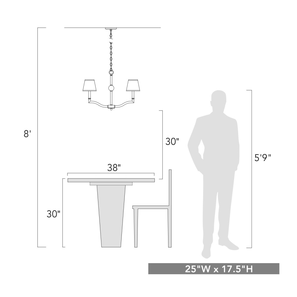 Bring timeless elegance into your home with the Wry Lighting Waverly 5-light Chandelier. Featuring Fabric shades and an Aged Brass frame, it creates a welcoming ambiance. The black silken fabric shades provide a classic and tailored contrast, with a crisp white interior lining that maximizes light output. The Aged Brass finish adds a warm glow and depth, making it ideal for traditional, transitional, or industrial-inspired spaces. This chandelier offers sloped-ceiling compatibility and adjustable height (Min: 19.5" - Max: 90.5") for versatility in any room. Perfect for dining rooms, foyers, and living areas, it's dry location rated, ensuring long-lasting quality. Requires 5 E12 Candelabra base bulbs (not included) with a maximum wattage of 60. Dimensions: 25"W x 17.5"H x 25"D. Elevate your decor with an exquisite lighting solution that highlights sophistication.