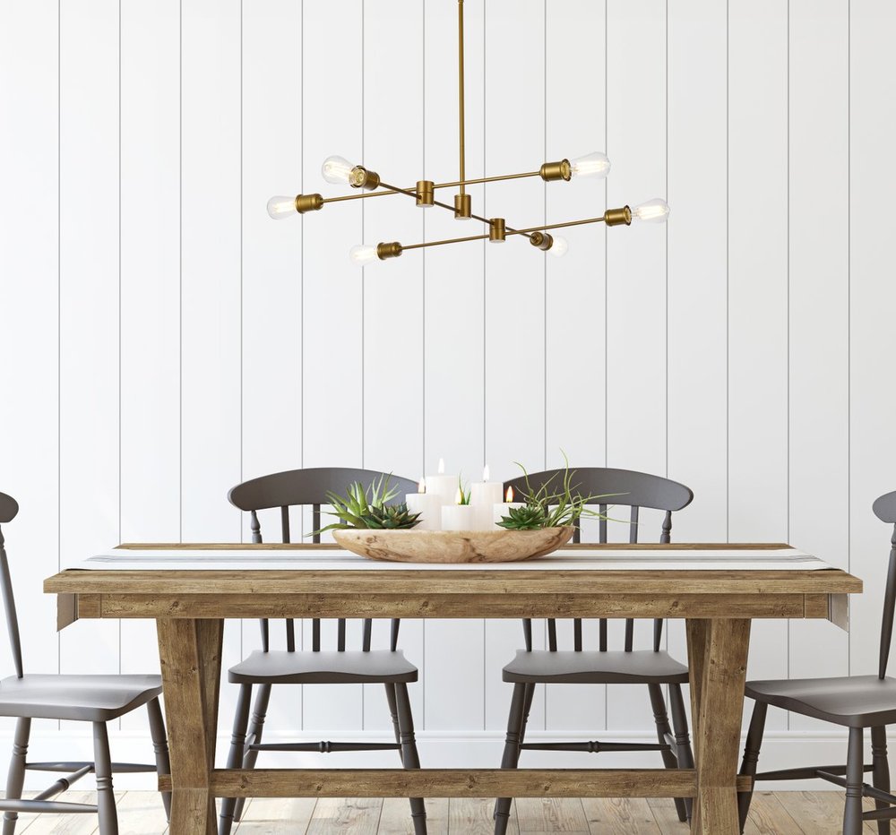 Xavier 6 lights pendant in brass is the perfect fixture for over a kitchen island, over a dining table, or use in any room to make a big statement. This pendant elevates the look of any space.