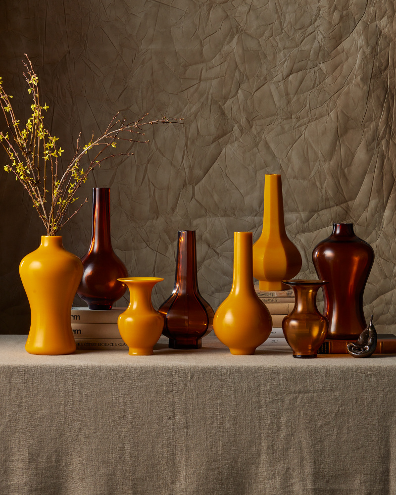 The Imperial Yellow Peking Maiping Vase is made of glass that is of an exceptional density and weight. The centuries-old methods that result in such remarkably thick and luminous glass is achieved by only two small factories whose artisans have the skills and know-how to successfully achieve the excellent quality evident in this yellow glass vase. These are modeled after artifacts that were once produced for the Chinese Imperial palace.