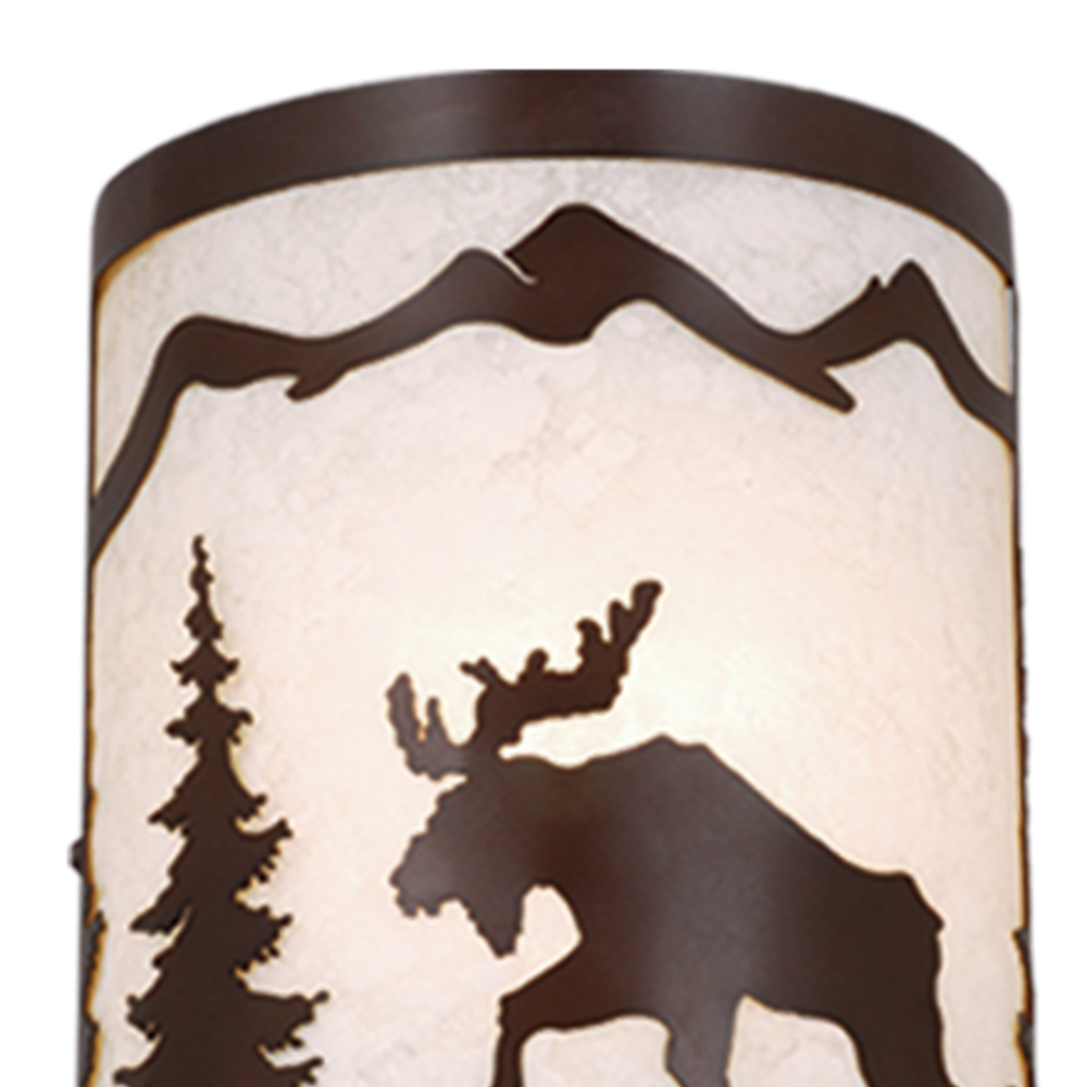 Evoking the spirit of the wilderness, this rustic themed light is clad in a burnished bronze finish and features silhouetted tree and moose imagery atop glowing white tiffany style glass. It is a great choice for a vacation lodge, cabin or suburban home and will complement a variety of home styles: anywhere you want to bring an element of nature. This versatile light is outdoor damp rated and can be used indoors as well as outdoors. Mount these lights on your porch, hallway, or entryway and experience this stylish look for yourself.