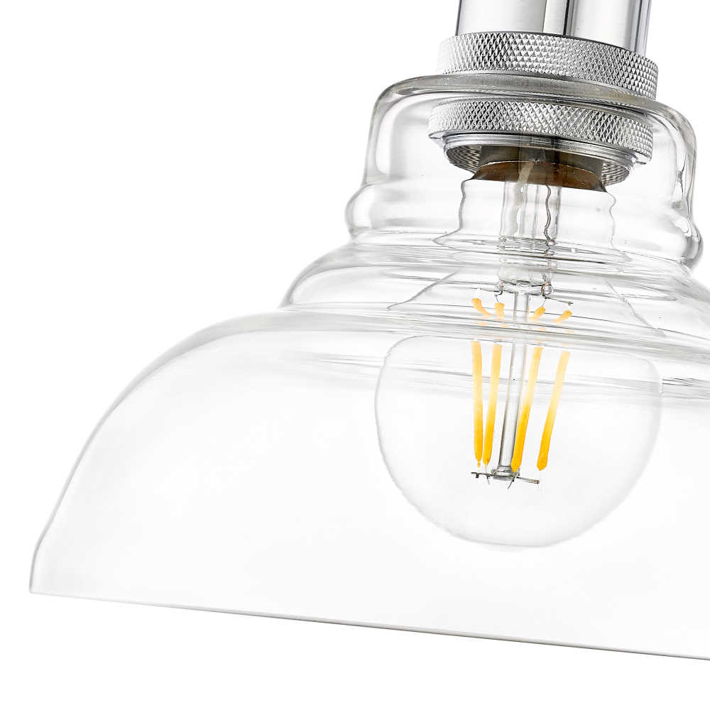 Bring transitional elegance into your home with the Yep by Golden Lighting Carver 1-light Vanity in Matte Black and Clear Glass. Featuring a clear glass shade atop a matte black frame, it creates a welcoming atmosphere. This clear glass shade offers brilliant, unobstructed light, highlighting the beauty of the fixture while providing practical task illumination. This fixture's matte finish, characterized by its deep, non-reflective surface, adds a sophisticated touch that complements a wide array of decor styles. Designed for brightening up bathrooms, this vanity light is damp location rated, suitable for areas with occasional moisture, like covered porches and laundry rooms. Its compact design is perfect for use above mirrors and sinks. Dimensions: 7.5"W x 8.63"H x 8.63"D. Requires 1 E26 medium base bulb (not included, max 60 wattage per bulb). Elevate your space with this stylish and functional vanity light that provides quality illumination while enhancing your bathroom's design.