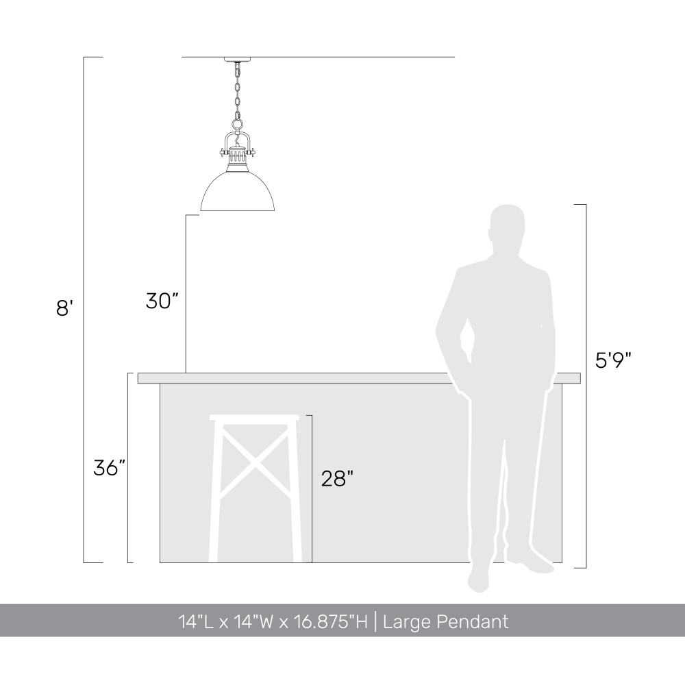 Enhance your home with the Yep by Golden Lighting Duncan 1-light 14in Chain Hung Pendant in Aged Brass and Black shade. This unique fixture features a metal shade and an aged brass finish, creating a striking visual impact. The metal shade, finished in a glossy black, reflects light magnificently, adding a dramatic touch to your living space while ensuring functional illumination. Our aged brass finish, reminiscent of vintage heirlooms, offers a warm glow, harmonizing beautifully with the bold contrast of the black shade, perfect for traditional and industrial-inspired designs. Ideal for stylish statements in kitchens, dining rooms, or bedrooms, this pendant is damp location rated, ensuring safety in covered areas. The sloped-ceiling compatibility and adjustable height, ranging from 19.875" to 91.875", allows for versatile installation options. Requires 1 E26 Medium base bulb (not included), with a maximum of 100 watts. Overall dimensions of 14"W x 16.88"H x 14"D ensure that this pendant is both a functional light source and a statement piece for your decor.