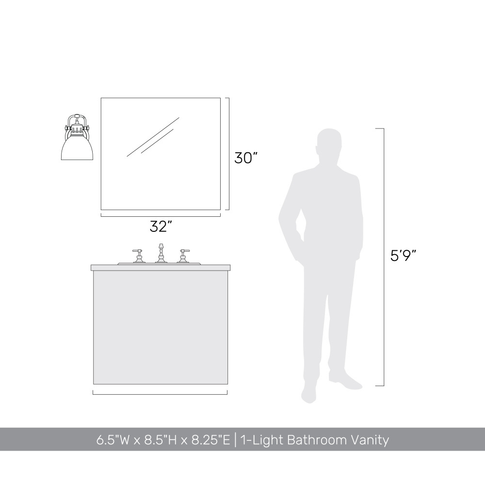 Bring farmhouse elegance into your home with the Yep by Golden Lighting Duncan 1-light Vanity. Featuring a metal shade and a pewter frame, it creates a welcoming atmosphere. The elegant metal shade showcases a glossy black finish, making a bold and luxurious statement while reflecting light beautifully. Our pewter finish, with its medium-grey hue and subtle warmth, offers an understated charm that seamlessly fits both classic and contemporary interiors. Brighten up bathrooms with dedicated lighting that flatters and provides practical task illumination. This fixture is damp location rated, making it suitable for covered and semi-enclosed spaces, including bathrooms and laundry rooms. Customize your lighting experience with adjustable directional heads, allowing you to highlight specific areas with ease. Overall Dimensions: 6.5"W x 8.5"H x 8.25"D. Requires 1 E26 Medium base bulb (not included), max 100 wattage per bulb. Enhance your space with quality craftsmanship and timeless style.
