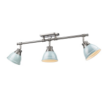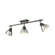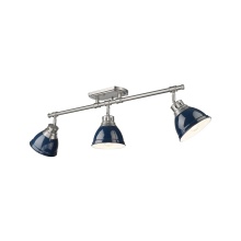 Bring contemporary elegance into your home with the Yep by Golden Lighting Duncan 3-light Semi-Flush Mount. Featuring a metal shade and a stylish Pewter frame, it creates a striking atmosphere. The Glossy Black metal shade boasts a deep, reflective surface that enhances light, creating a high-impact focal point. The Pewter finish adds a medium-grey tone with subtle warmth, perfect for a variety of decor styles, from industrial to classic. This fixture is damp location rated, making it ideal for covered areas like porches and bathrooms. Adjustable directional heads allow you to customize the lighting to spotlight specific areas. Its dimensions measure 35.38"W x 10.75"H x 6.5"D, and it requires three E26 Medium base bulbs (not included) with a maximum wattage of 100 per bulb. The Duncan fixture combines functionality and modern design, making it a stylish addition to your home.