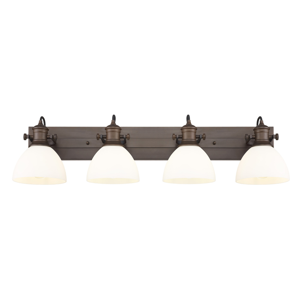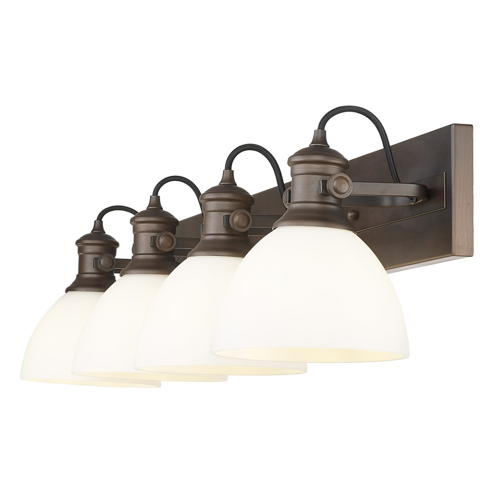 Yep by Golden Lighting Hines 4-light Vanity in Rubbed Bronze and Opal Glass