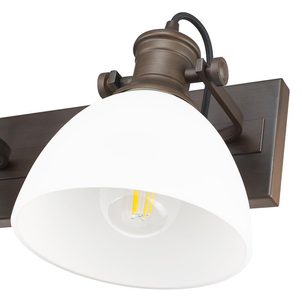 Bring traditional elegance into your home with the Yep by Golden Lighting Hines 4-light Vanity in Rubbed Bronze and Opal Glass. Featuring an opal glass shade and a rubbed bronze frame, it creates a welcoming atmosphere. The opal glass shade diffuses light evenly for a soft, glare-free glow, providing a timeless and elegant appeal. Our Rubbed Bronze finish brings a touch of classic warmth to any design, celebrated for its rich, deep brown base accented by gentle highlights of bronze. Ideal for brightening up bathrooms with task illumination, this fixture is damp location rated, suitable for areas with occasional moisture, and adjustable directional heads allow for customized lighting. Overall Dimensions: 34.63"W x 8.75"H x 8.25"D Requires 4 E26 Medium base bulbs (not included), max 60 watt each. This vanity light not only serves as a practical solution but also as a stylish statement, bringing both quality and charm to your space.