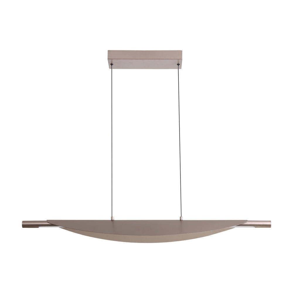 Bring contemporary flair into your kitchen with the Yep by Golden Lighting Luma Integrated LED Island Light. Featuring an acrylic shade and a Coffee Silver frame, it creates a welcoming ambiance that elevates your kitchen space. The acrylic shade, finished in Coffee Silver, boasts a warm silver-brown color with a fine, circular brushed texture, producing a soft, inviting glow and a refined look. Our Coffee Silver finish bridges the gap between cool silver and warm bronze, providing a versatile taupe-like hue that complements a wide range of palettes, making it perfect for modern kitchens. Tailored for kitchen islands, this fixture is dry location rated, ensuring it’s suitable for indoor settings not subject to moisture. It’s also sloped-ceiling compatible, and its adjustable height feature allows you to customize the drop to suit your space with a minimum of 11.75" and a maximum of 125.625". Overall dimensions are 42"W x 5"H x 10.25"D, with integrated LED technology providing bright, energy-efficient illumination of 332 rated lumens and a relaxing 3000K glow. Enhance your kitchen with elegant lighting that combines functionality and contemporary style.