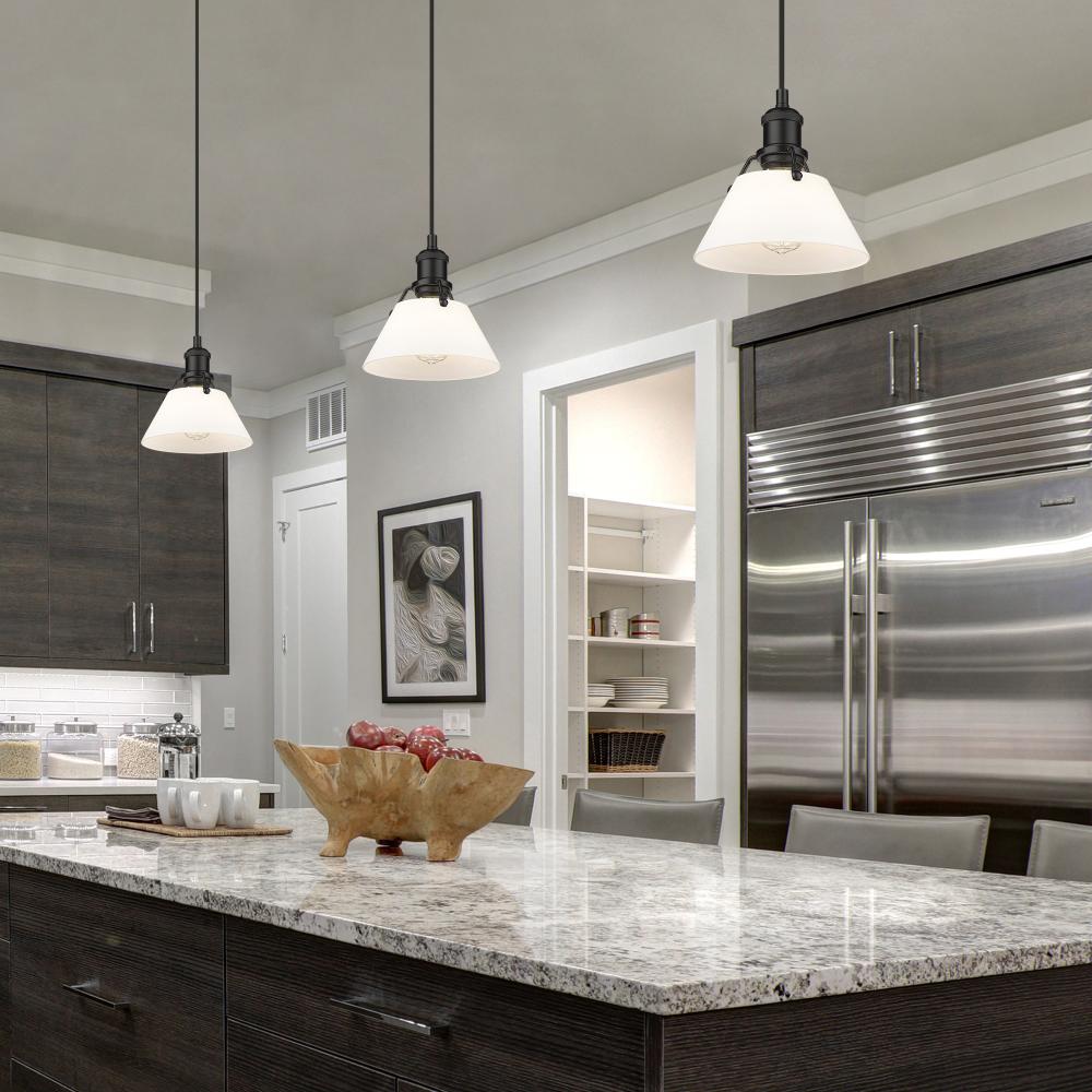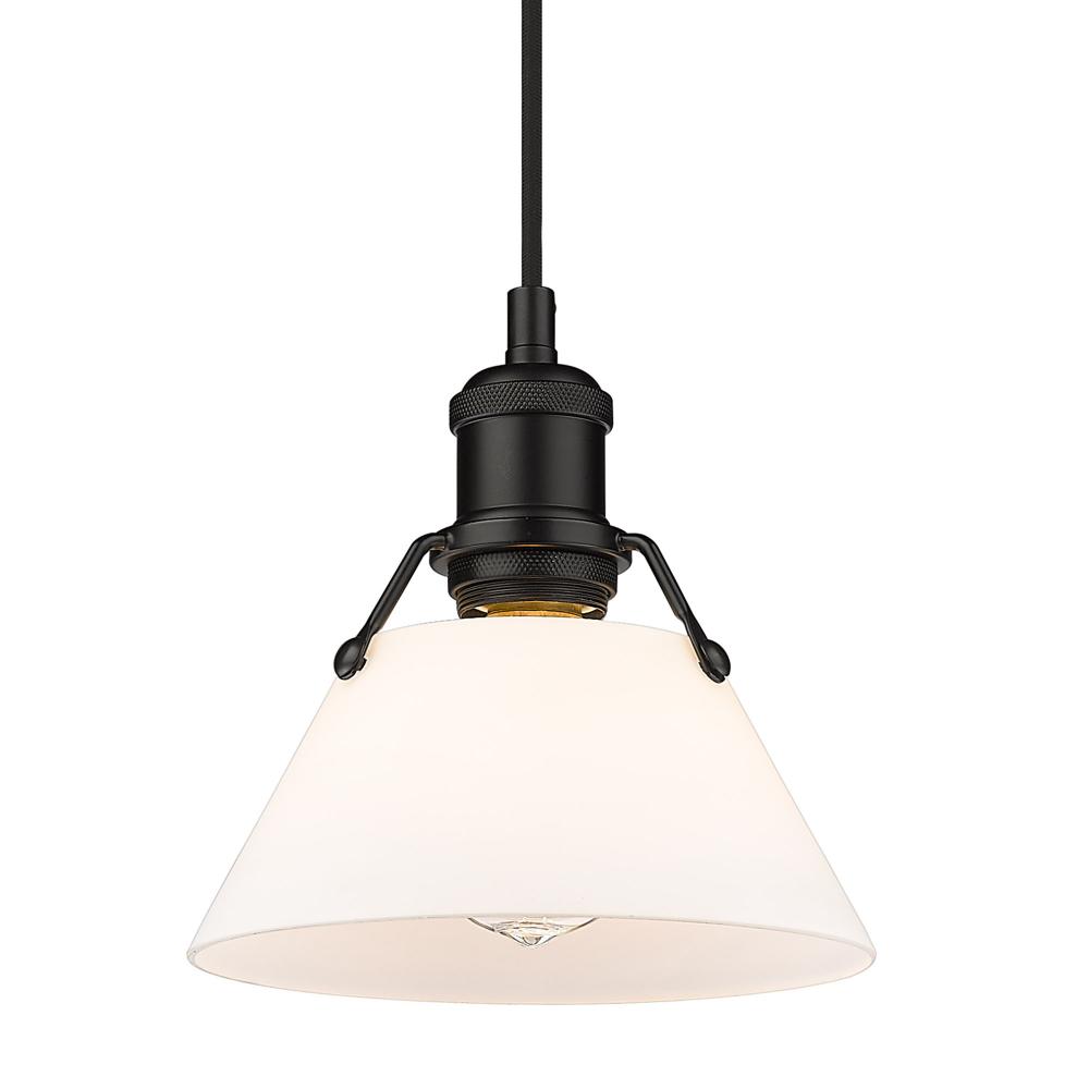 Yep by Golden Lighting Orwell 1-light 8in Pendant in Matte Black and Opal Glass