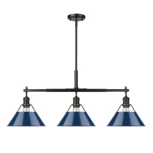 Yep by Golden Lighting Orwell 3-light Island Light in Matte Black and Dusky Blue shade