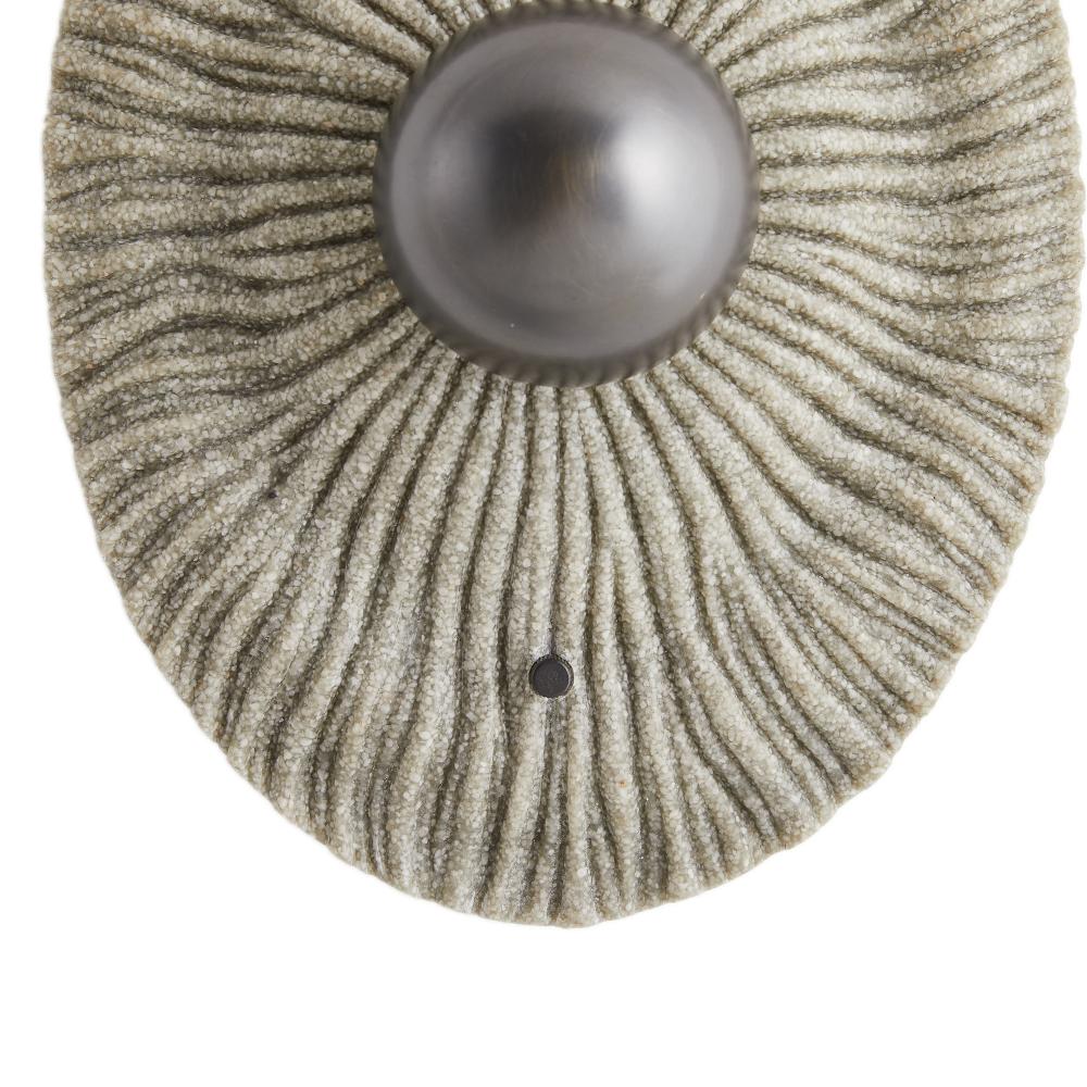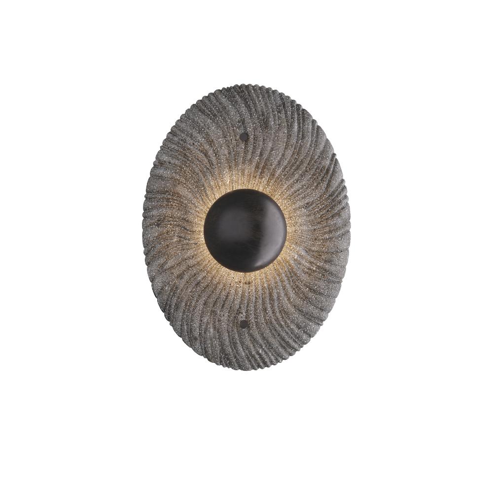 The natural beauty and complexity of a coral reef inform our Yesenia sconce. Crafted of charcoal ricestone composite and English bronze steel, the integrated LED ambient light creates a complex yet soothing in pattern. The integrated LED is enlosed by a white acrylic diffuser. Damp-rated, although limited covered outdoor conditions may affect finish. Finish will vary.