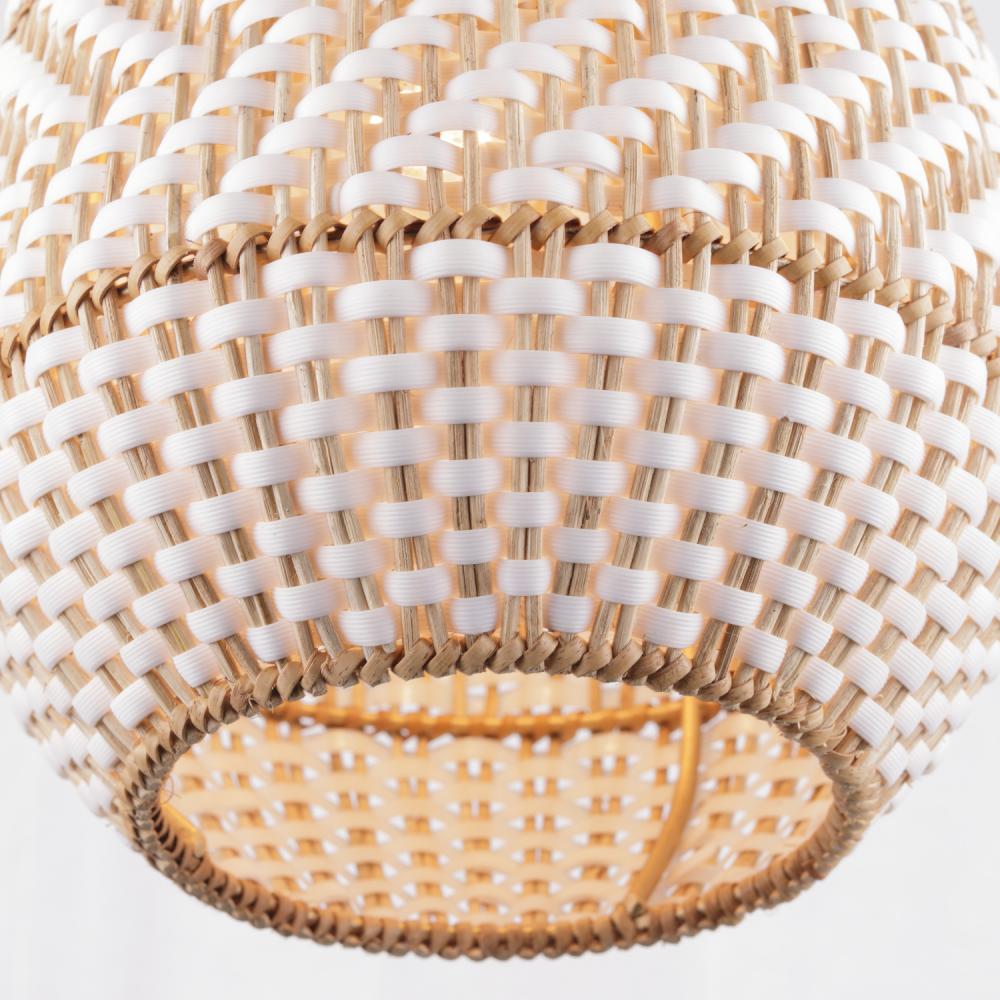 The Zanzibar Collection is an embodiment of laid-back luxe and thoughtful simplicity. By marrying the natural textures of natural rattan with white and/or black lanyard, the fixture introduces a striking color palette with a soft gold finish that instantly brings comfort and style to a living space Handcrafted with precision, the intricate weave introduces texture and depth to your décor. Whether suspended over a breakfast nook or in pairs above a kitchen island, the Zanzibar exudes an earthy, elegant charm that brings an artisanal touch to your decor.