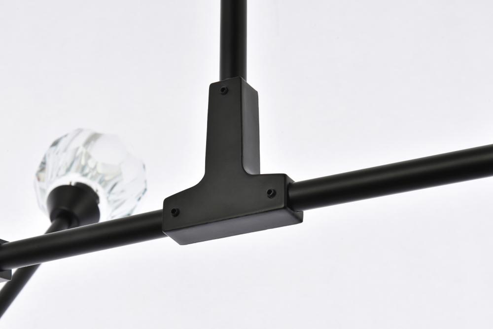 Crafted from iron metal and crystal, it features a round ceiling canopy, a hanging rod of 46 inch long, and arms extended with a solid K9 crystal ball from rods at all angles for a modern and linear look. Each 20W G9 bulb ( not included) is diffused by a faceted clear crystal ball giving the fixture a touch of industrial and glam inspiration. This work of art will add an artful focal point to your entryway, dining room, kitchen, or office. Evoking a sophisticated and timeless aesthetic to any space and will be an instant conversation started with its finely faceted crystal sphere which is polished by hand to reflect and refract light. Available in three different finishes in gold, chrome, and black.