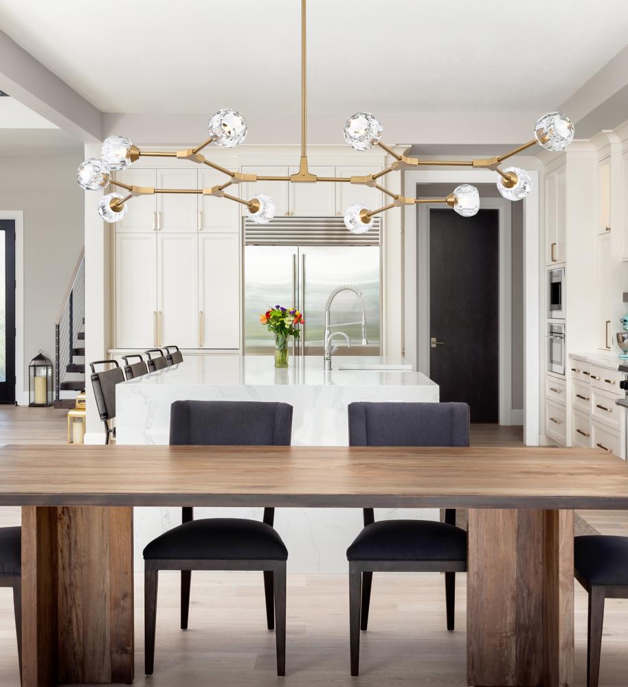 Crafted from iron metal and crystal, it features a round ceiling canopy, a hanging rod of 46 inch long, and arms extended with a solid K9 crystal ball from rods at all angles for a modern and linear look. Each 20W G9 bulb ( not included) is diffused by a faceted clear crystal ball giving the fixture a touch of industrial and glam inspiration. This work of art will add an artful focal point to your entryway, dining room, kitchen, or office. Evoking a sophisticated and timeless aesthetic to any space and will be an instant conversation started with its finely faceted crystal sphere which is polished by hand to reflect and refract light. Available in three different finishes in gold, chrome, and black.