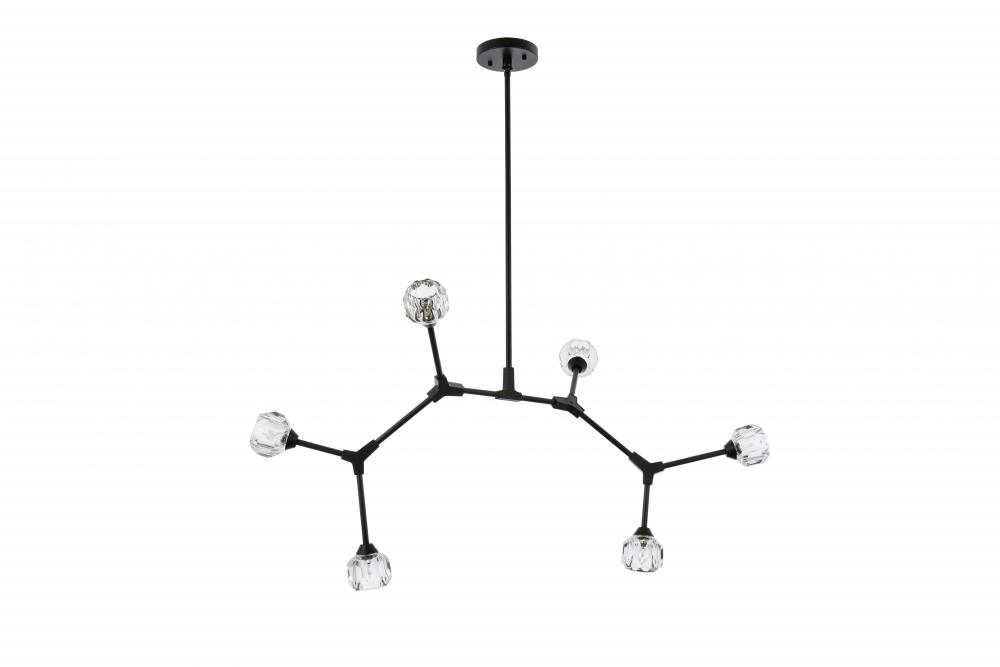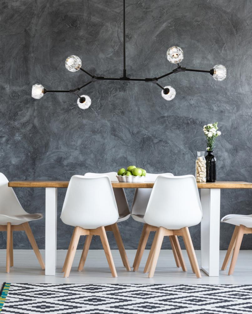 Crafted from iron metal and crystal, it features a round ceiling canopy, a hanging rod of 46 inch long, and arms extended with a solid K9 crystal ball from rods at all angles for a modern and linear look. Each 20W G9 bulb ( not included) is diffused by a faceted clear crystal ball giving the fixture a touch of industrial and glam inspiration. This work of art will add an artful focal point to your entryway, dining room, kitchen, or office. Evoking a sophisticated and timeless aesthetic to any space and will be an instant conversation started with its finely faceted crystal sphere which is polished by hand to reflect and refract light. Available in three different finishes in gold, chrome, and black.