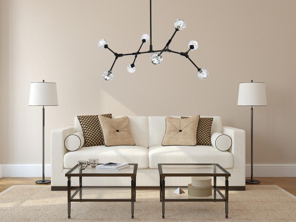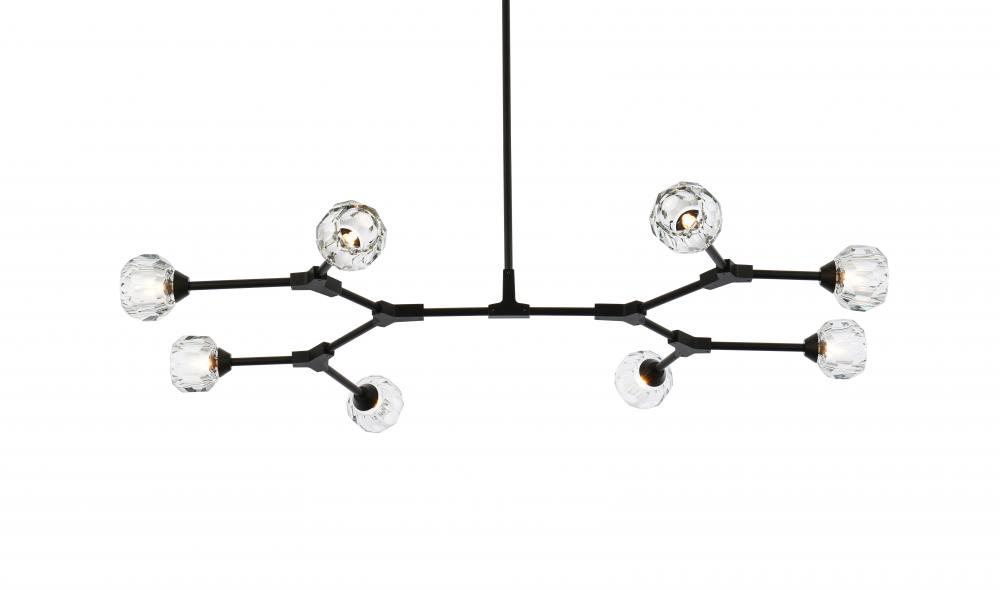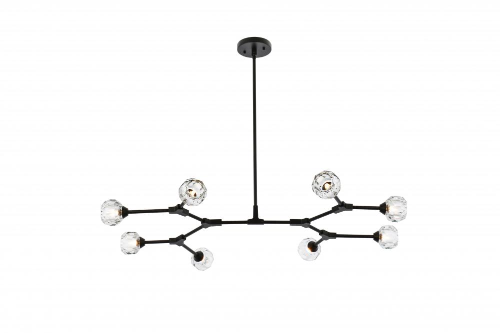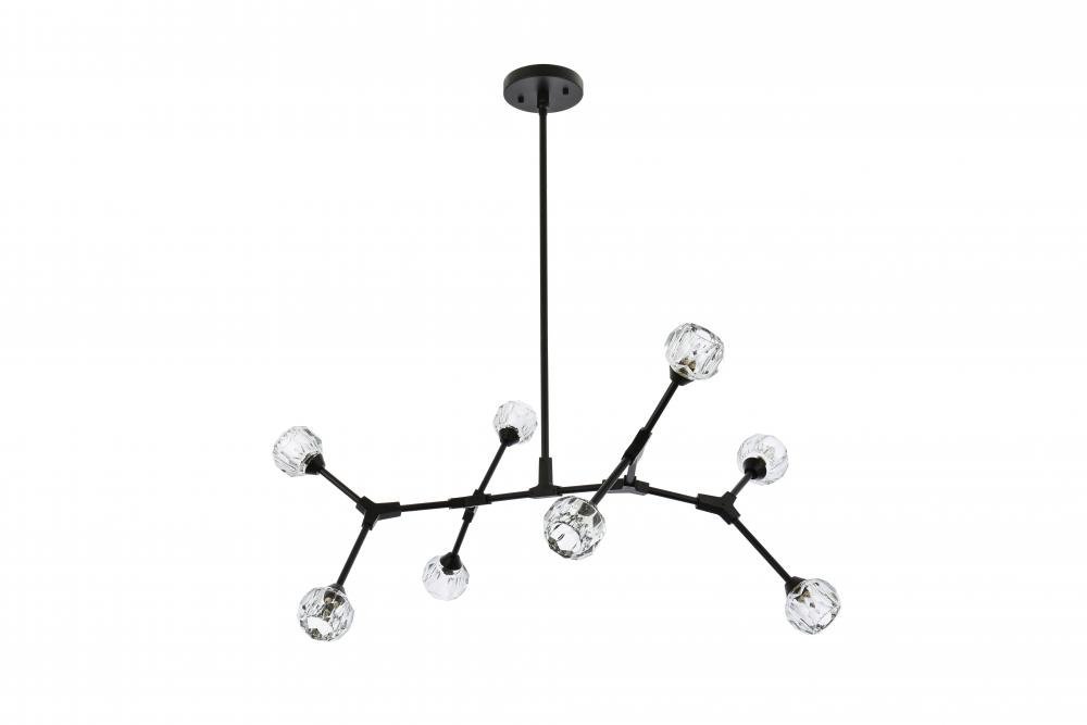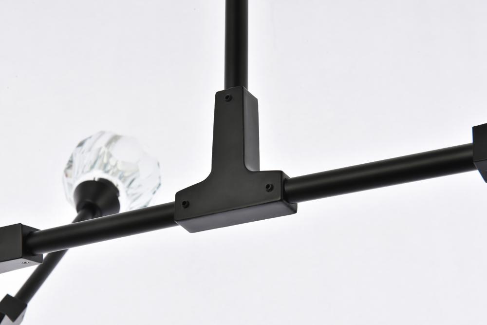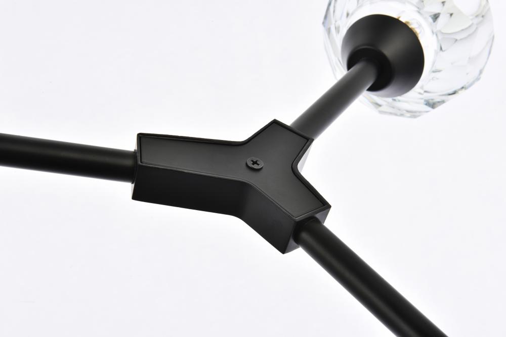 Crafted from iron metal and crystal, it features a round ceiling canopy, a hanging rod of 46 inch long, and arms extended with a solid K9 crystal ball from rods at all angles for a modern and linear look. Each 20W G9 bulb ( not included) is diffused by a faceted clear crystal ball giving the fixture a touch of industrial and glam inspiration. This work of art will add an artful focal point to your entryway, dining room, kitchen, or office. Evoking a sophisticated and timeless aesthetic to any space and will be an instant conversation started with its finely faceted crystal sphere which is polished by hand to reflect and refract light. Available in three different finishes in gold, chrome, and black.