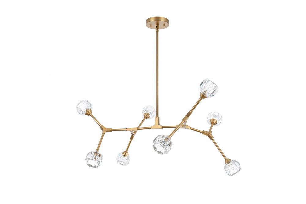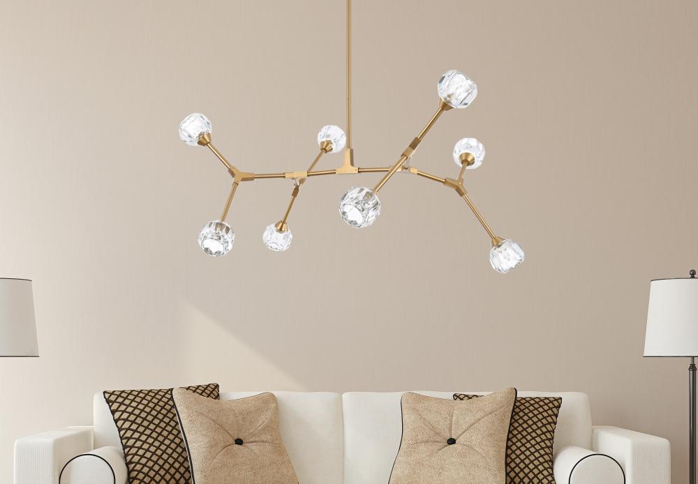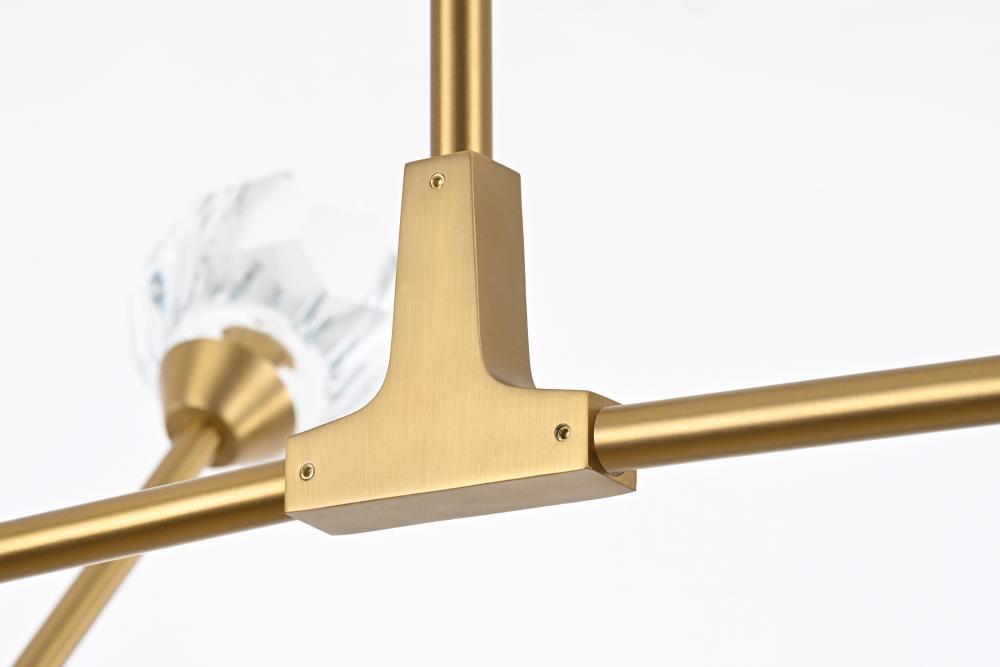 Crafted from iron metal and crystal, it features a round ceiling canopy, a hanging rod of 46 inch long, and arms extended with a solid K9 crystal ball from rods at all angles for a modern and linear look. Each 20W G9 bulb ( not included) is diffused by a faceted clear crystal ball giving the fixture a touch of industrial and glam inspiration. This work of art will add an artful focal point to your entryway, dining room, kitchen, or office. Evoking a sophisticated and timeless aesthetic to any space and will be an instant conversation started with its finely faceted crystal sphere which is polished by hand to reflect and refract light. Available in three different finishes in gold, chrome, and black.