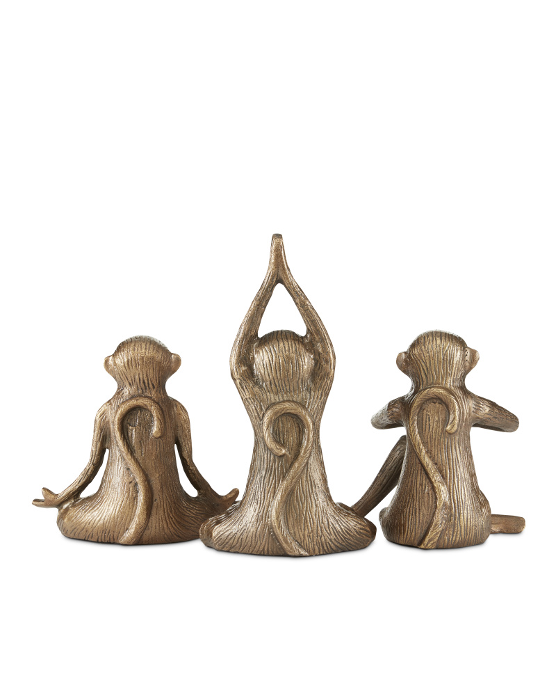The characters in the Zen Brass Monkey Set are practicing an ancient art form as they take great care in making their gestures. But this doesn't mean the trio of gold sculptures in an antique-brass finish isn't seriously cute! They are made of cast aluminum with striations along their surfaces that mimic fur. This and their expressions make these animal sculptures read as authentic.