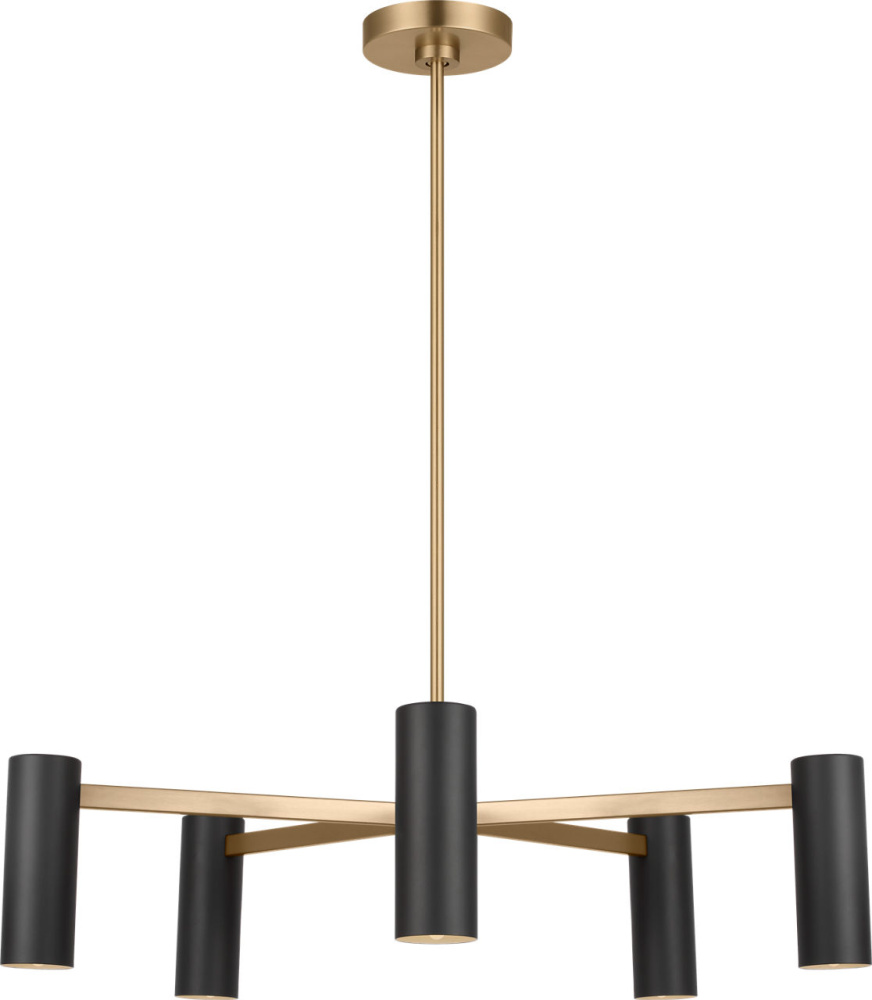 The Zentro 5-Light Chandelier features five cylindrical metal shades arranged around a central hub. with its balanced proportions and clean lines, it delivers focused downlight while maintaining an airy, open silhouette. Scaled for dining rooms, living spaces, and bedrooms, this chandelier adapts across interiors with its refined simplicity.