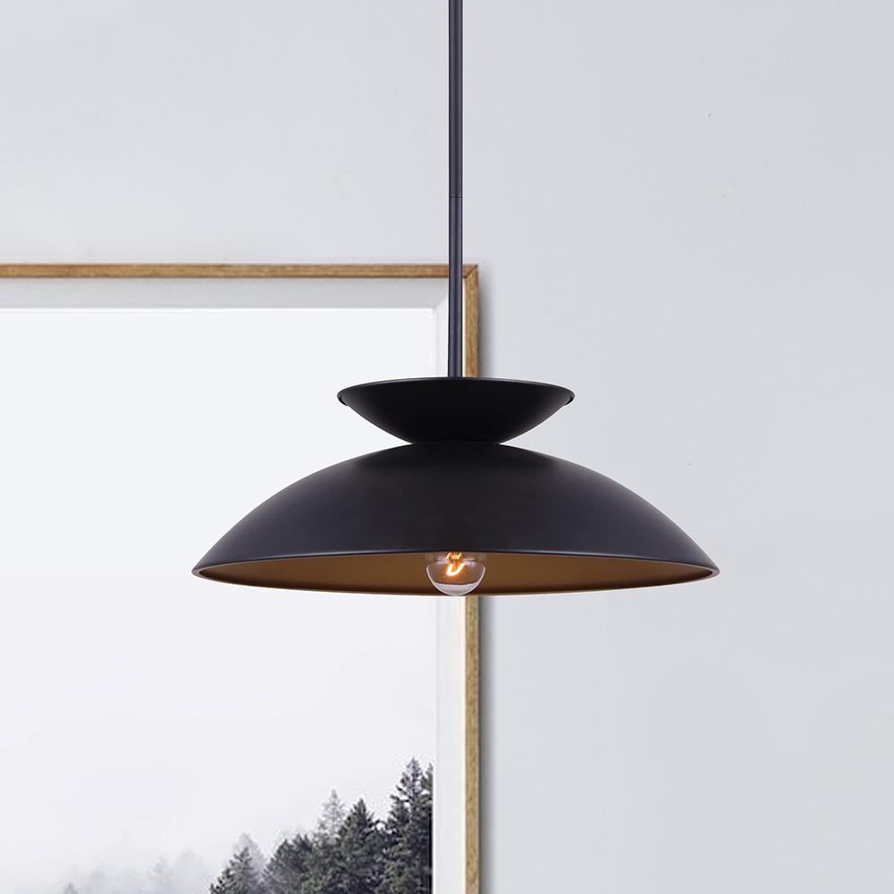 Elevate your interior with the Ziva 1 Light Pendant in Black Finish, a striking masterpiece that effortlessly combines aesthetics and functionality to transform your living spaces. The Ziva Pendant is designed to bring an artistic flair and ample illumination, making it perfect for both residential and hospitality settings.This single-light rod pendant in a matte black finish serves as a bold statement piece, adding a touch of industrial-chic style to your decor. The Ziva Pendant features an adjustable height, accommodating ceiling heights ranging from 13 to 55 inches, ensuring a customized fit for any room.Designed for use with a 60W Type A bulb, this pendant delivers abundant illumination, making it ideal for focal lighting over tables, counters, or in bar settings. Its wide 17.75-inch shade enhances its versatility, making it suitable for various spaces, including kitchens and dining areas.With its minimalist design, the Ziva Pendant effortlessly blends into modern interiors, providing a sleek and stylish touch. Installation is hassle-free, making it an excellent choice for home updates that require a touch of sophistication.Transform your living spaces with the Ziva 1 Light Pendant, a masterpiece that combines the boldness of matte black with the elegance of contemporary design, resulting in a cozy and inviting atmosphere.