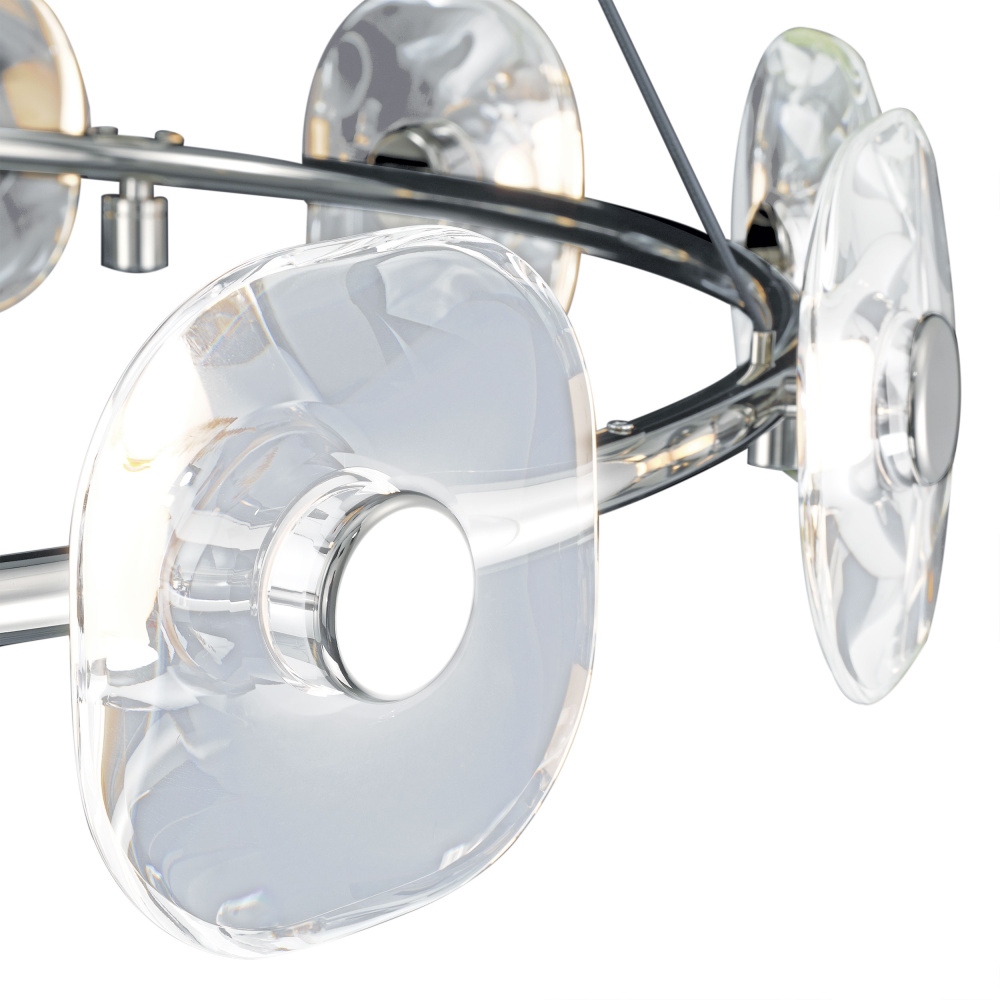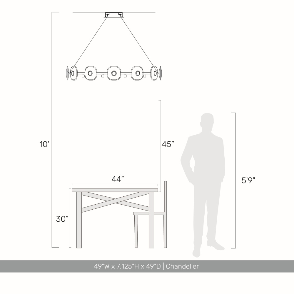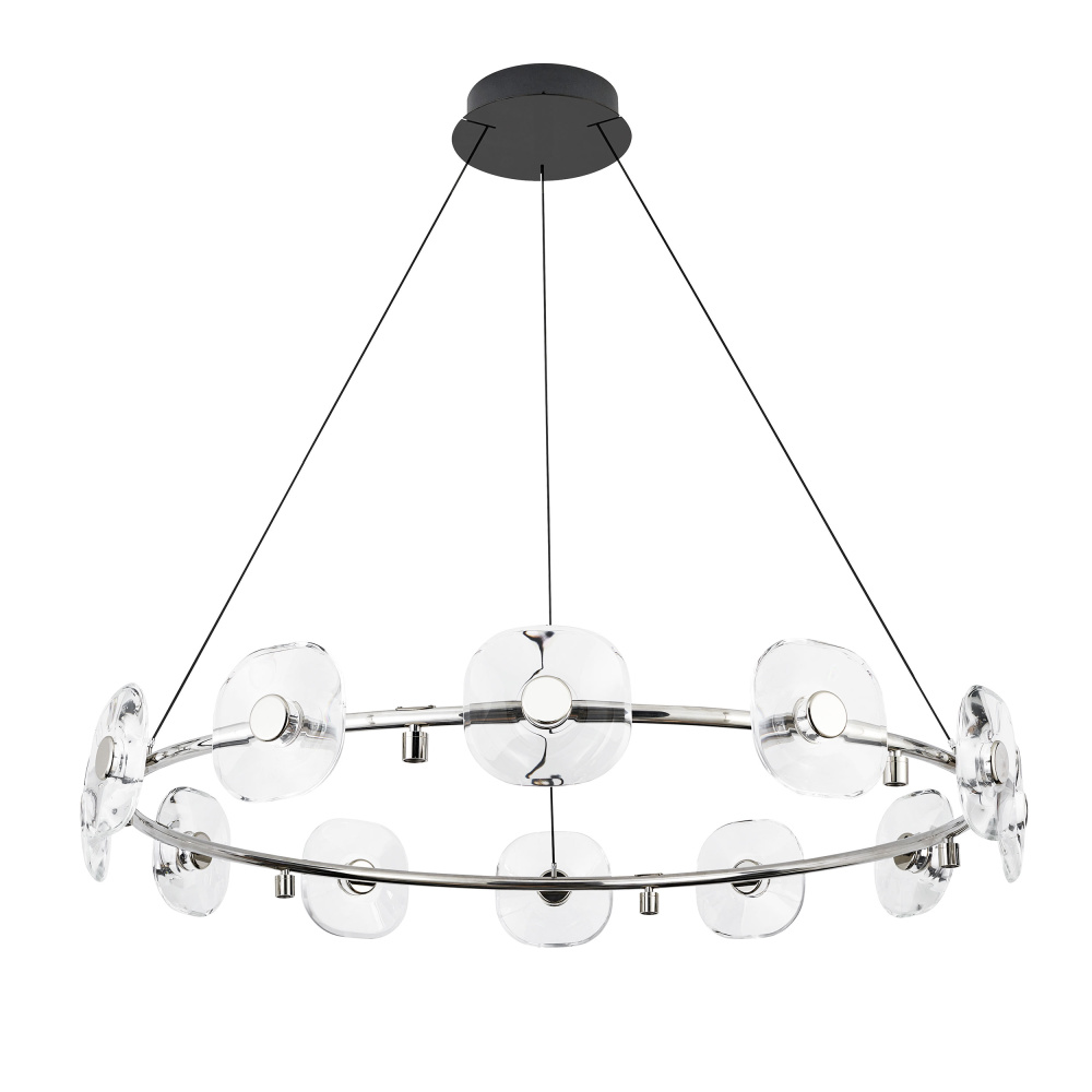 Bring luxurious sophistication into your home with the Ziva by Golden Lighting Celestia 12-light Integrated LED Chandelier in Chrome. This radiant piece serves as a stunning centerpiece, perfect for various settings. Designed without traditional shades, the chandelier features breathtaking K9 crystal discs that amplify light while refracting it into a dazzling display. The polished Chrome finish elevates the entire piece with its sleek, reflective surface, suitable for both contemporary and classic decor. Ideal for dining rooms, foyers, and living spaces, it is dry location rated, making it perfect for indoor settings away from moisture. Installation is hassle-free with sloped-ceiling compatibility, and the height is adjustable from 36.75" to 137.75", allowing for a fully customizable experience. Overall Dimensions: 49"W x 7.13"H x 49"D. Integrated LED technology provides 6240 lumens at a warm 3000K CCT, ensuring your space is beautifully illuminated. Experience the elegance and quality of the Ziva by Golden Lighting Celestia Chandelier, a perfect blend of brilliance and modern design that enhances your home’s ambiance. Showroom Only.