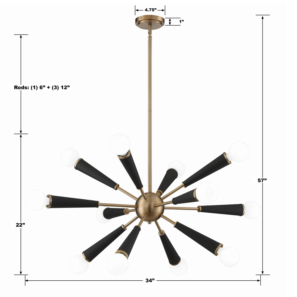 This sputnik style Zodiac, offers a dramatic mid century look.