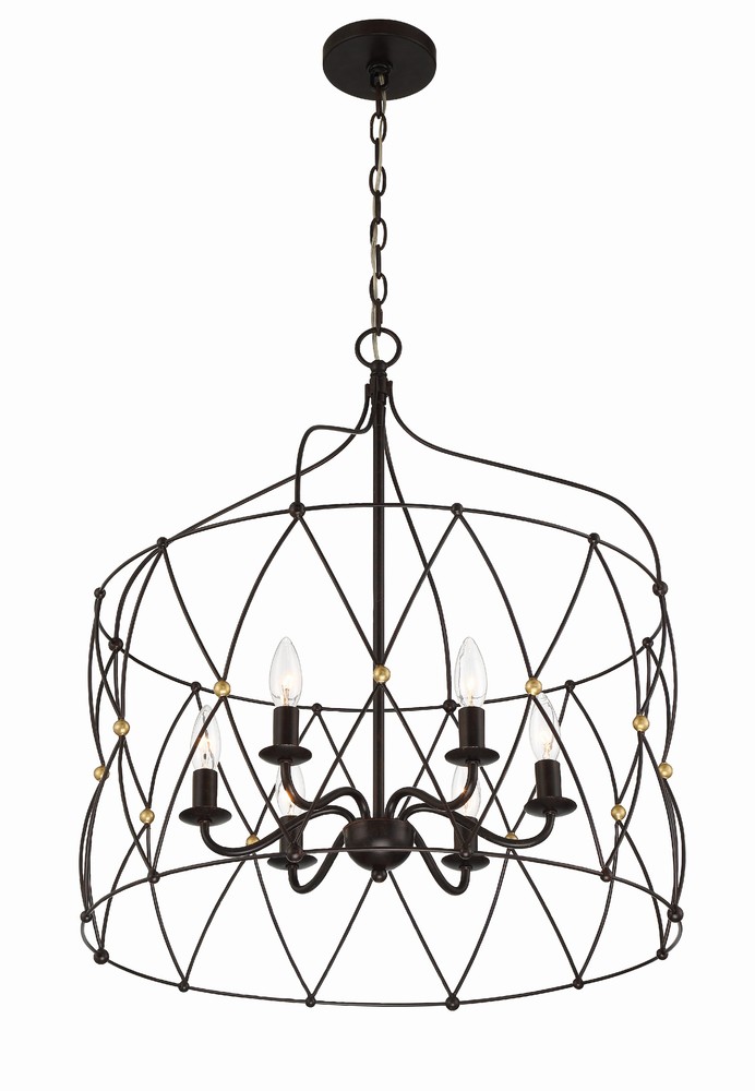 The simplicity of bohemian design takes center stage in our spherical Zucca chandelier. Zucca, which means pumpkin in Italian, features a saucer-shaped metal wire ring frame finished in English Bronze with Antique Gold accents. The woven mixed metal design adds visual interest to a space while still combining just the right amount of sophistication. Whether the look is rustic, industrial, or boho, this light is as versatile as it is stylish.