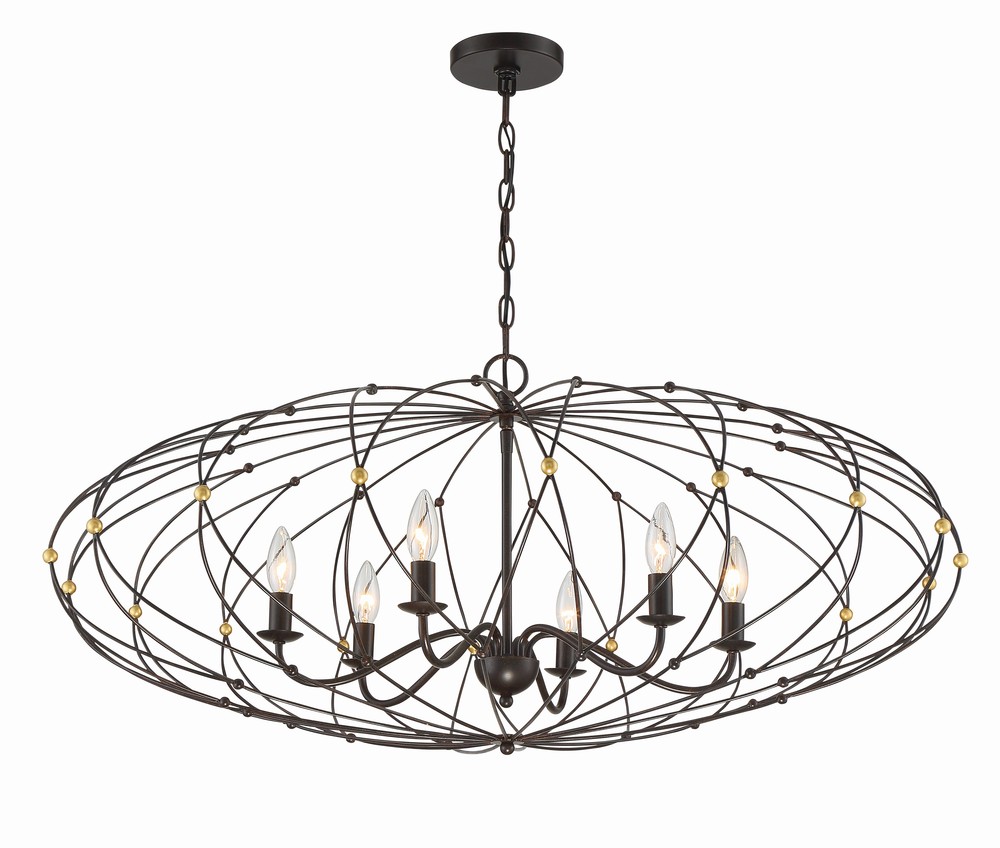 The simplicity of bohemian design takes center stage in our spherical Zucca chandelier. Zucca, which means pumpkin in Italian, features a saucer-shaped metal wire ring frame finished in English Bronze with Antique Gold accents. The woven mixed metal design adds visual interest to a space while still combining just the right amount of sophistication. Whether the look is rustic, industrial, or boho, this light is as versatile as it is stylish.