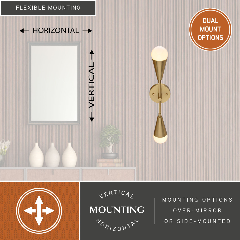 Elevate your bathroom (or any space!) with the sophisticated mid-century modern design of the Zurich 18-inch wall sconce. Perfect for flanking a mirror above your vanity, this sconce provides ample, balanced light for daily routines while adding a touch of timeless style. Beyond the bathroom, its versatile design also makes it a stylish choice for hallways, bedrooms, or even as accent lighting in a living area. From its sleek lines to its elegant finish, the Zurich wall sconce fixture exudes modern sophistication. The two lights provide ample illumination, and the open design allows for easy bulb changes. Its versatile design also complements transitional and contemporary spaces.