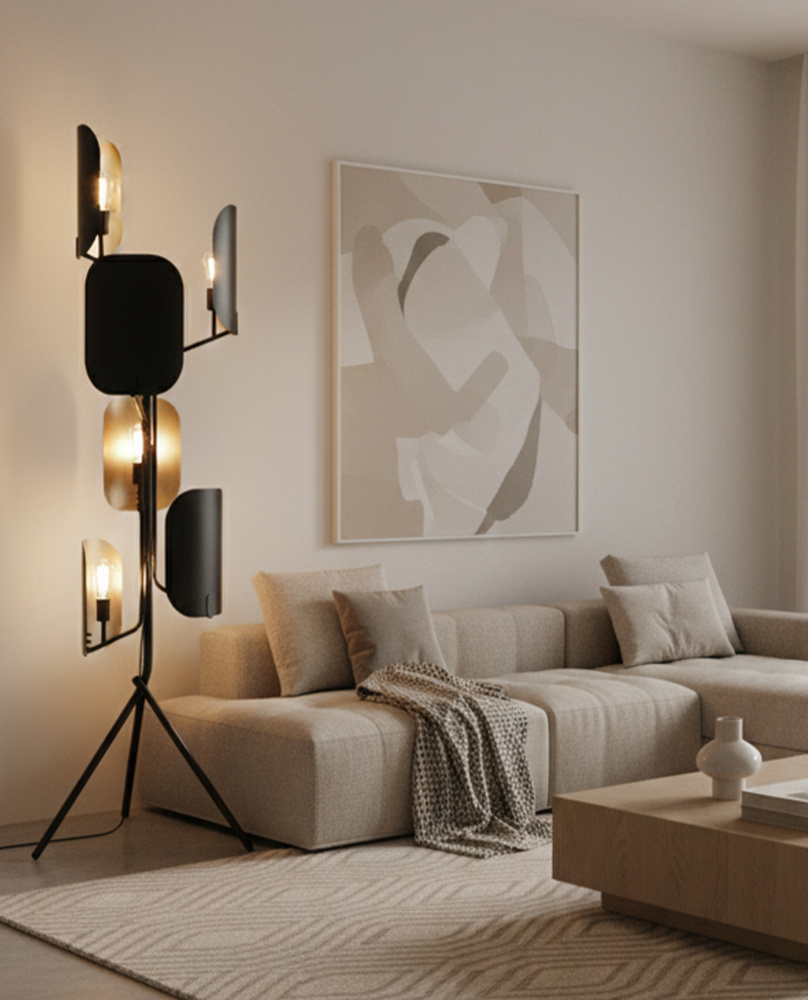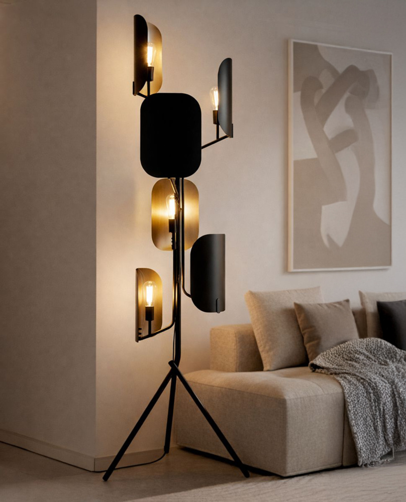 Bold Architectural Presence: ZYRIC's multi-arm structure introduces a modern, sculptural profile that stands out without overwhelming the room. The matte black finish gives the lamp a grounded, confident look.
