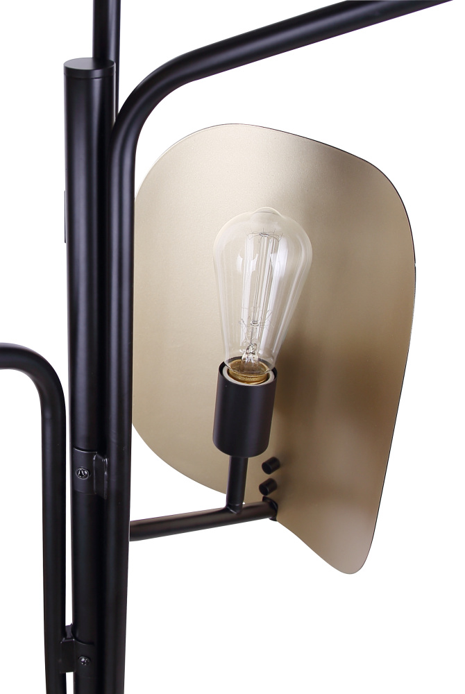 The ZYRIC 6-light floor lamp brings bold modern presence to any space with its matte black finish and warm gold-accented interiors. Its sculptural form feels sleek and confident, creating a grounding statement that instantly energizes a room. Each fixed shade features a gold inner surface that reflects light softly outward, adding depth, warmth, and a quietly luxe glow. Designed with an easy in-line foot switch, ZYRIC keeps everyday use simple while maintaining its clean silhouette. Whether styled in a living room, bedroom, or reading corner, this floor lamp channels colour and contrast with intention, making your space feel expressive, modern, and alive.